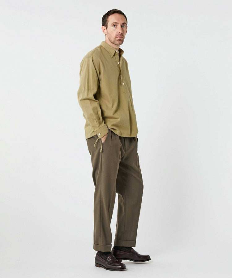 1960年代のミリタリーパンツから生まれたオフィサーパンツ「ポーツマス」を、よりスタンダードなベルトループモデル。