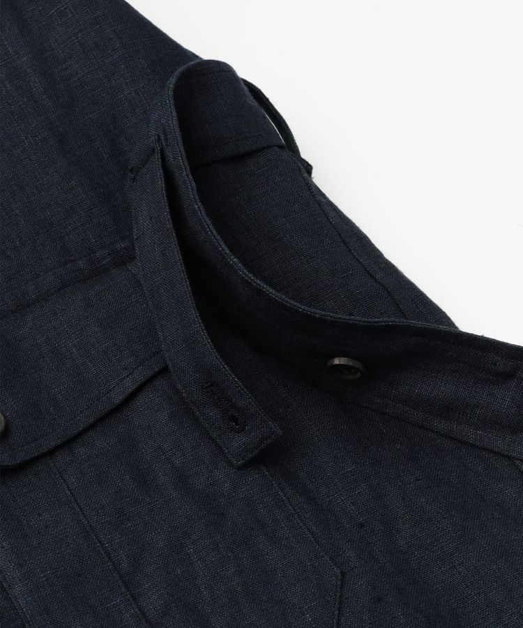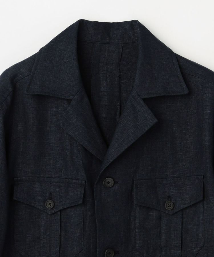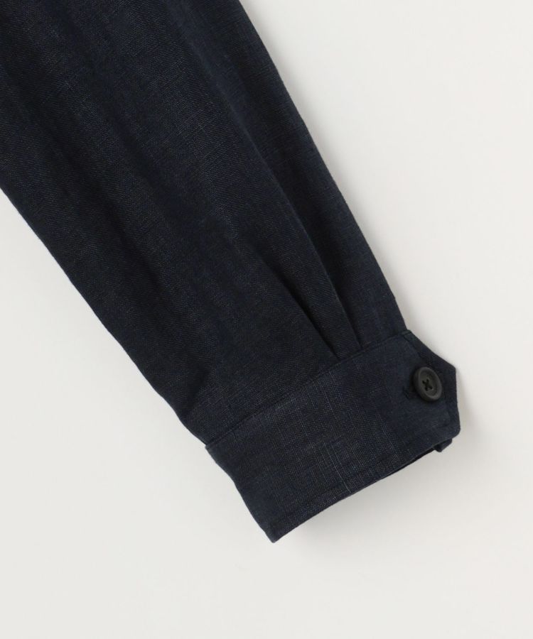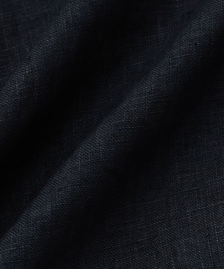 一般的な25番手のリネンを用いたキャンバス生地。クールクラッシュという生地を叩きほぐす加工が施されており、リネンながらもソフトでふっくらとした風合いに仕上がっています。程良い厚みと共に、リネンの持つ心地よさを着始めからお楽しみいただけます。