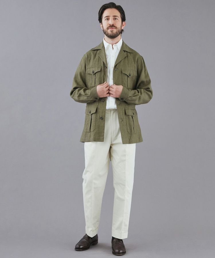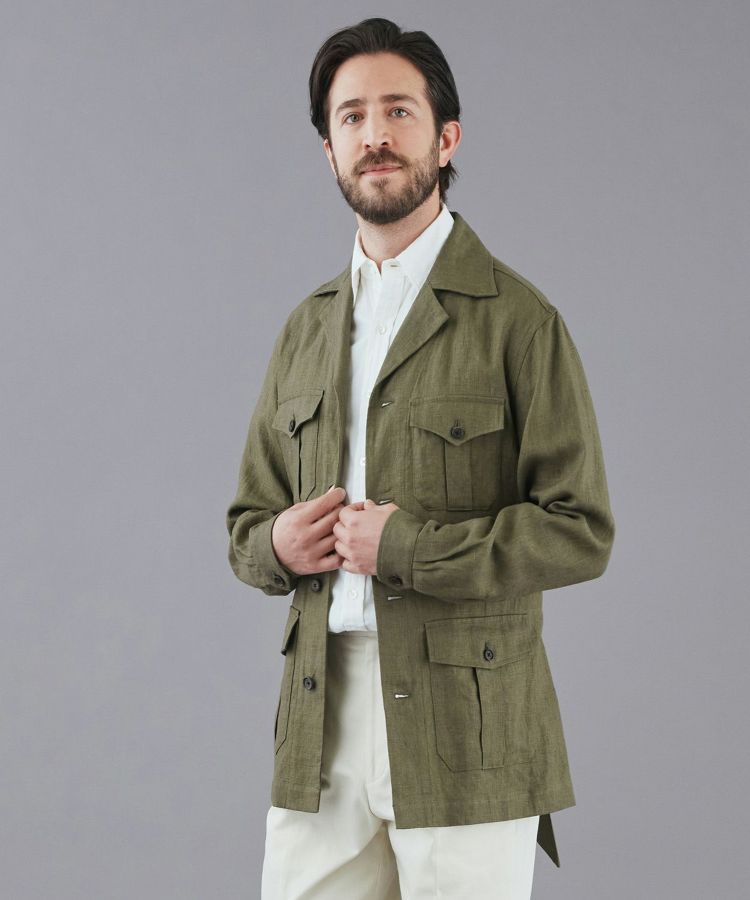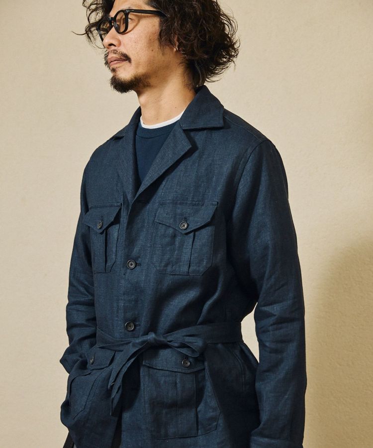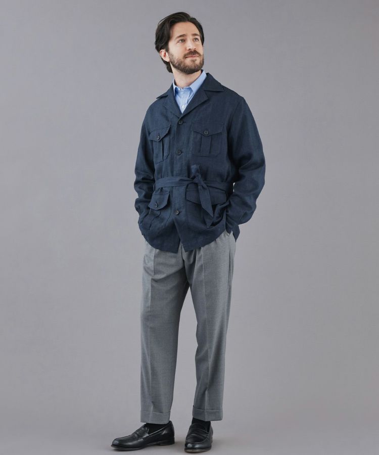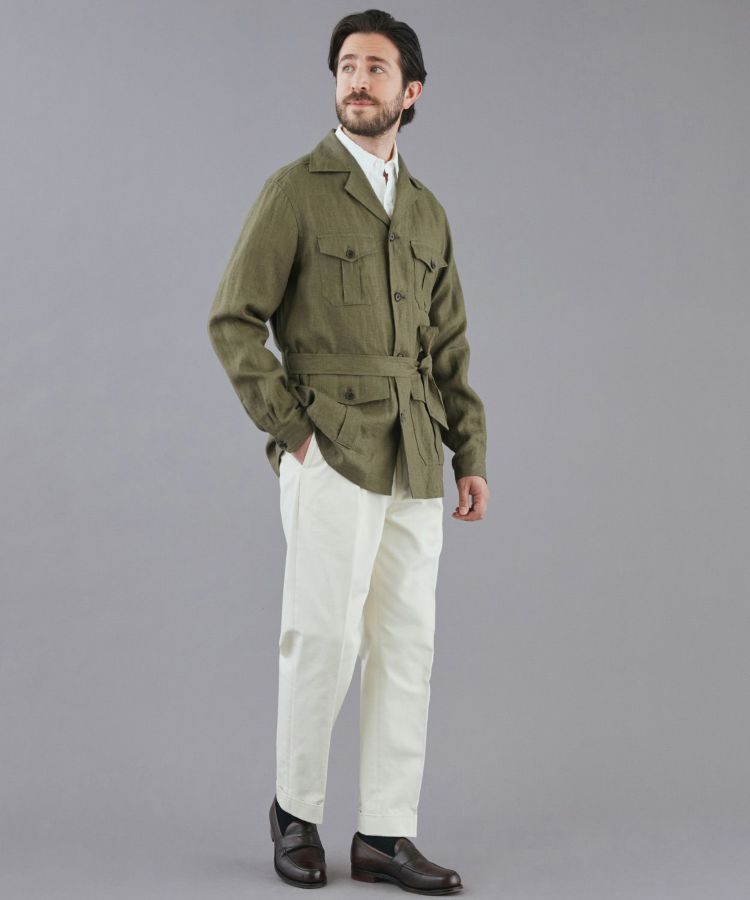 パッチポケットやウエストベルトなどの装飾と、機能性で人気のサファリジャケットを再構築したモデル「サウサンプトン」。