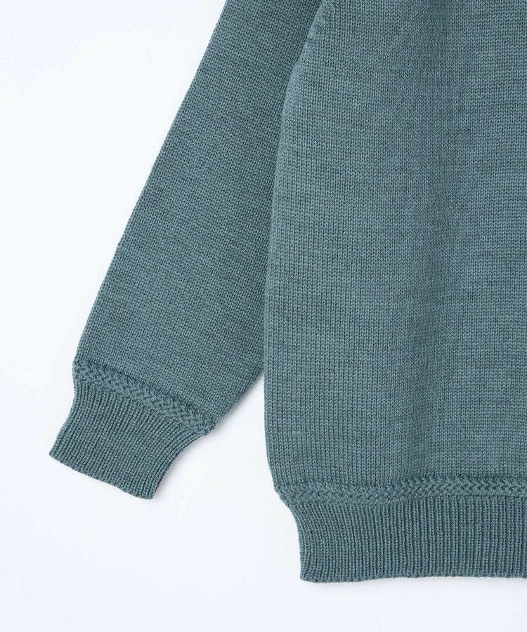 スコットランドの伝統的なワークセーターとしてのルーツに持つ、フィッシャーマンセーターをベースにデザインした一枚。