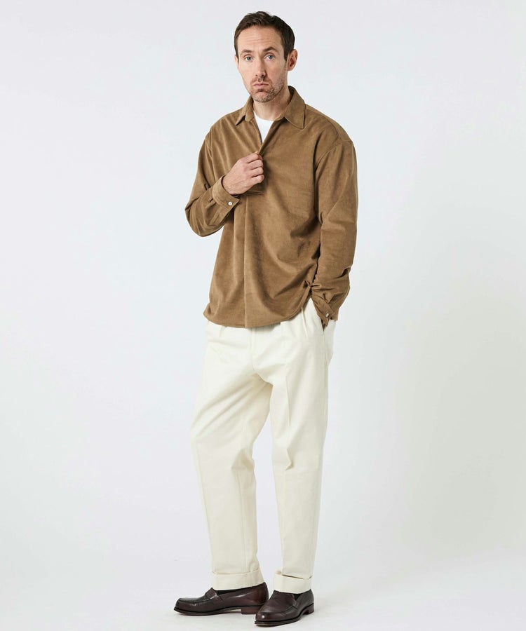 ・前開きボタンループ仕様で、上品なリラックス感を演出