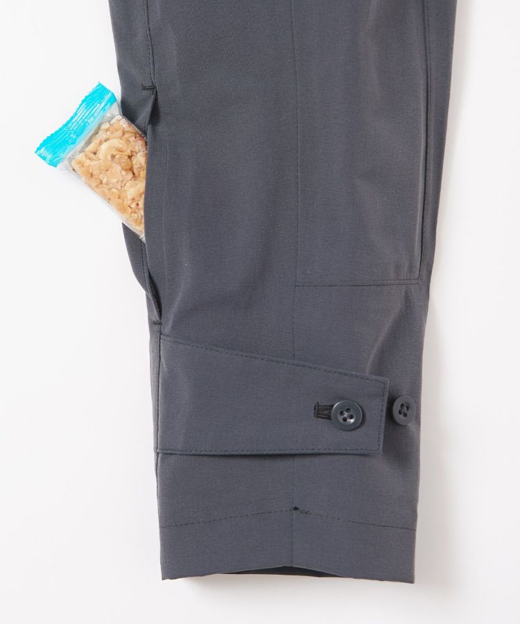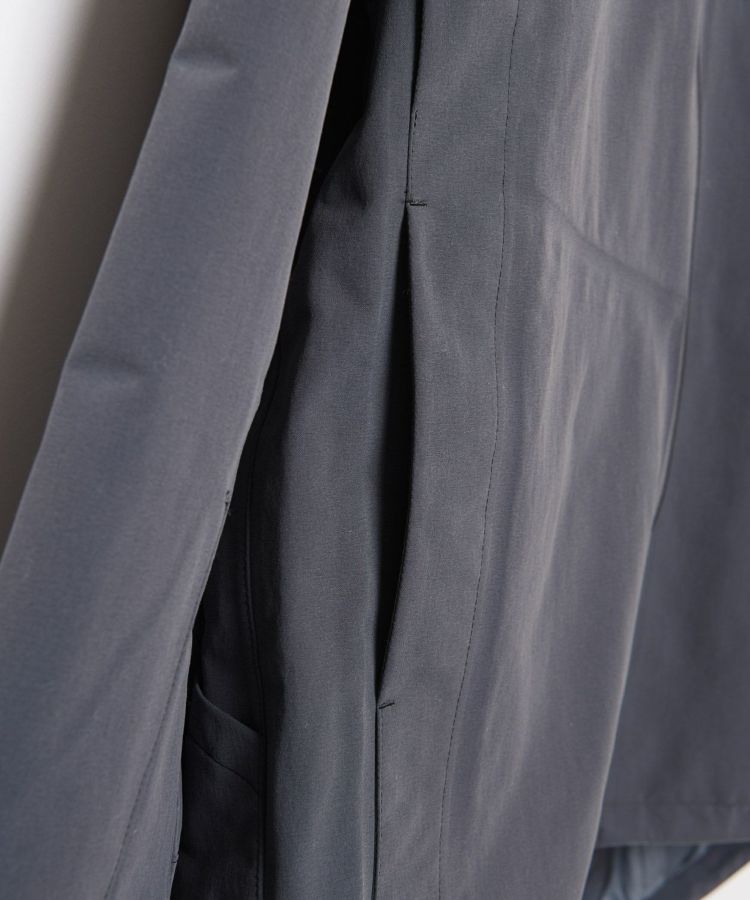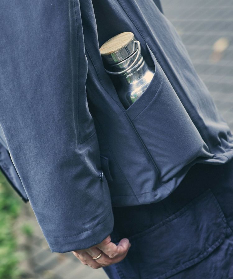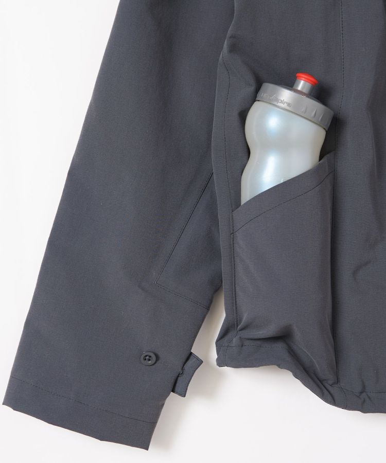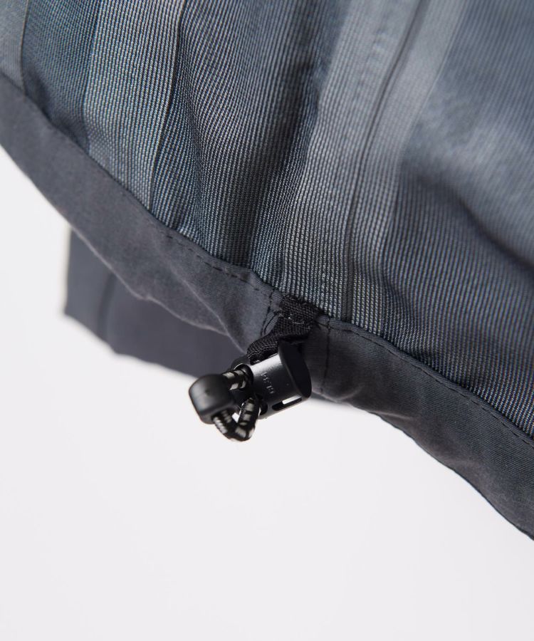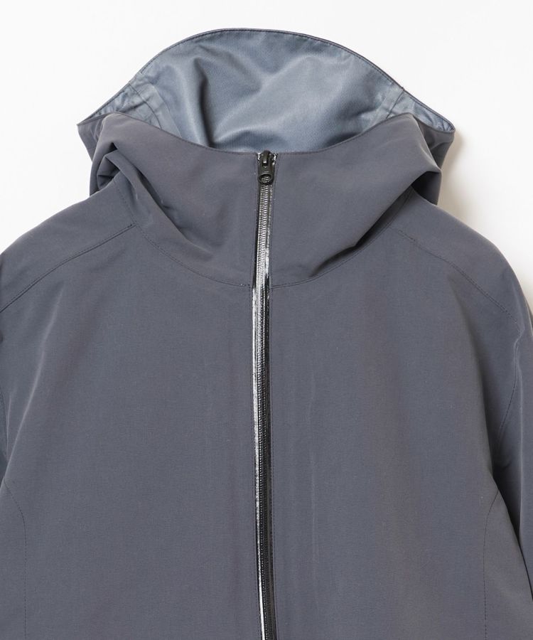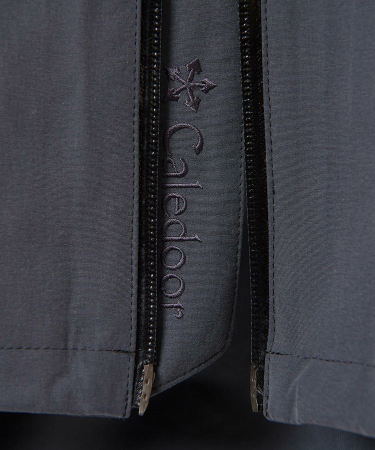 裾と背面のフード部分にはドローコードが付いており、突然の雨や冷たい風が吹くときなど、体を守りたいときにすぐに調整が可能。切替パーツのデザインはカレドアーのロゴをイメージし、細部にまでこだわりが詰まっています。ワードローブに一枚あると何かと重宝する万能ジャケットです。