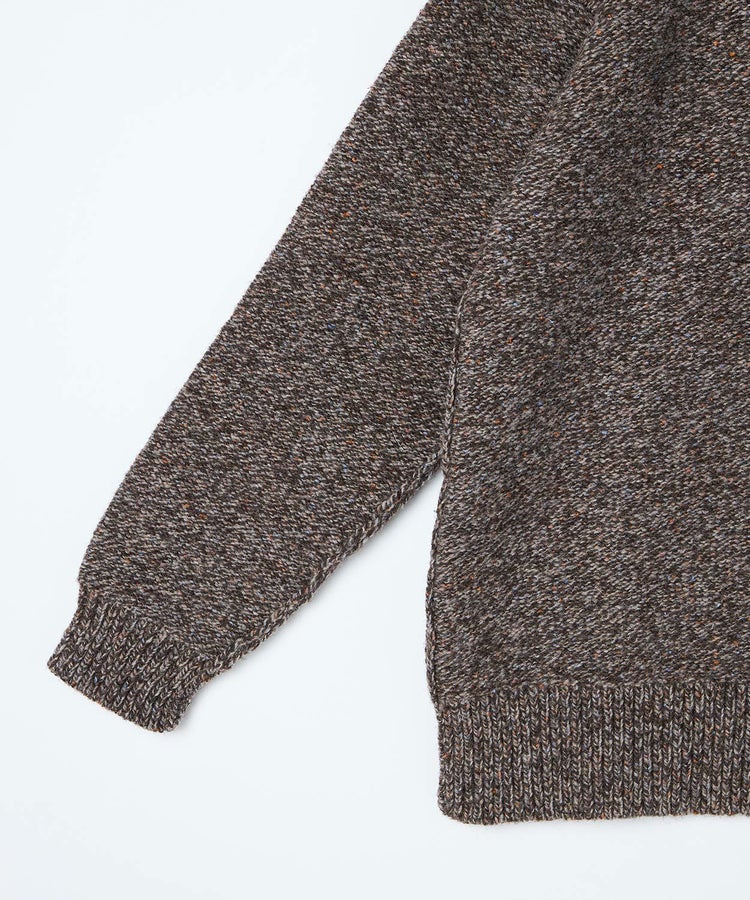 リンキングを外出しするなど遊び心も感じられる、風合い豊かで着心地の良い主役級のニットウェアです。