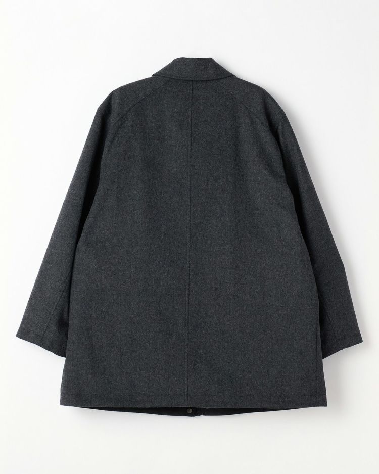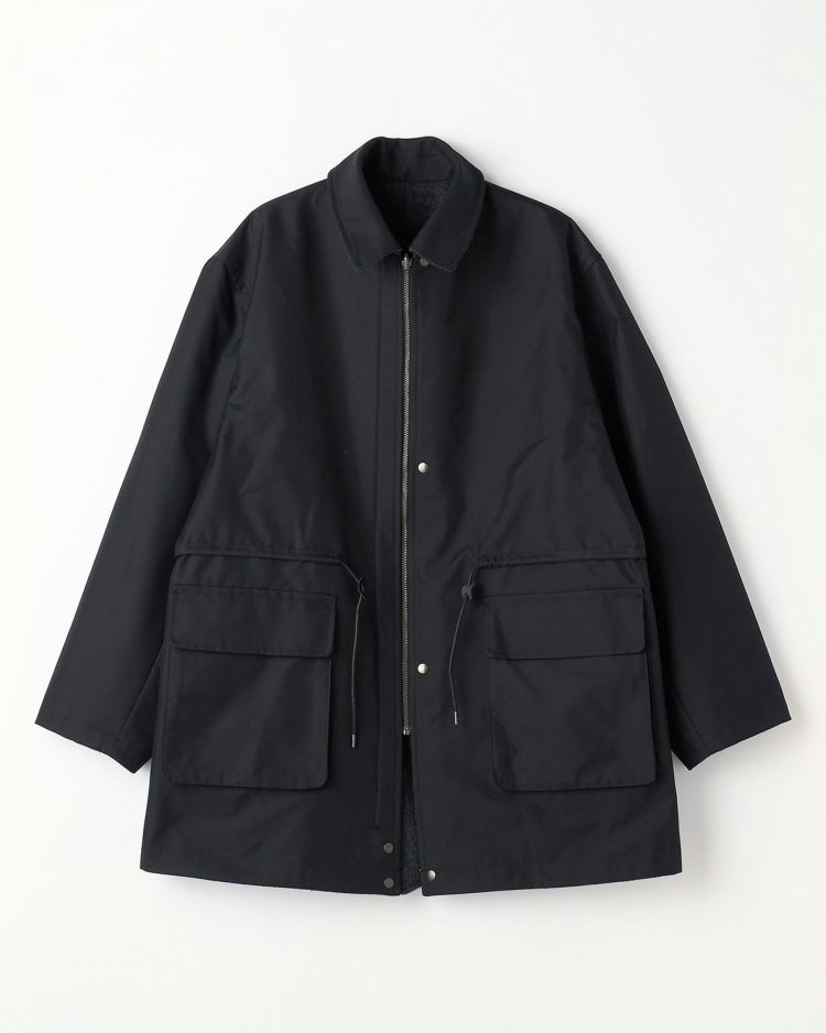 ウエストに配したドローコードによって、シルエットの変化を楽しむことができます。実用性を追求した収納設計が特徴で、左右のポケットはそれぞれ3方向(上部、横、フラップ下)からアクセス可能。タンブラーや折り畳み傘などを収納しても、両手を空けたランブリングを楽しめます。さらに、快適な着用感を実現するため、背面ヨークに設けた空気孔が熱をスムーズに逃がし、ムレを軽減する仕様になっています。リバーシブル仕様により、その日の気分や天候に合わせて表情を変えられる、多彩な活用が可能なコートです。