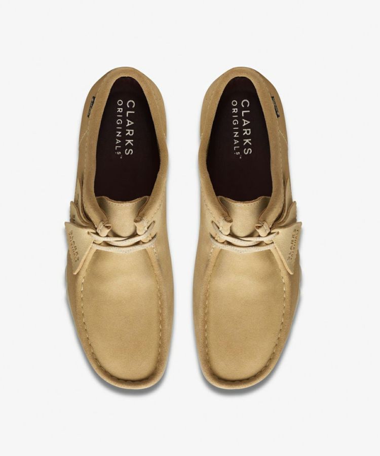 クラークスのアイコンシューズ「ワラビー」に防水・透湿性に優れたゴアテックス®と防滑性にすぐれたビブラム®ソールを装備した全天候対応モデル。