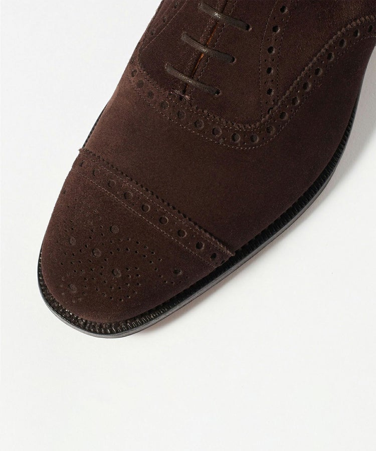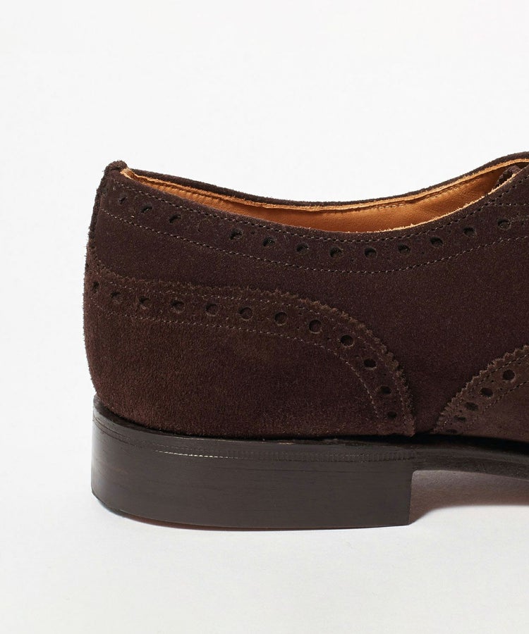 "外交官"の名を持つ、普遍的なオックスフォードシューズで、爪革やアイレットには精巧なブローグ(飾り穴)を施し、上品な装飾性で英国の風格を醸し出しています。すっきりした美しいシルエットに加え、インソールと中底の間に敷き詰められた練りコルクによって、履き心地の良さを実現。上質で柔らかいスエードのアッパーは、ウールスーツのビジネスシーンからチノパンやコーデュロイパンツなどのカジュアルなジャケパンスタイルまで幅広いスタイリングにあわせることが出来ます。