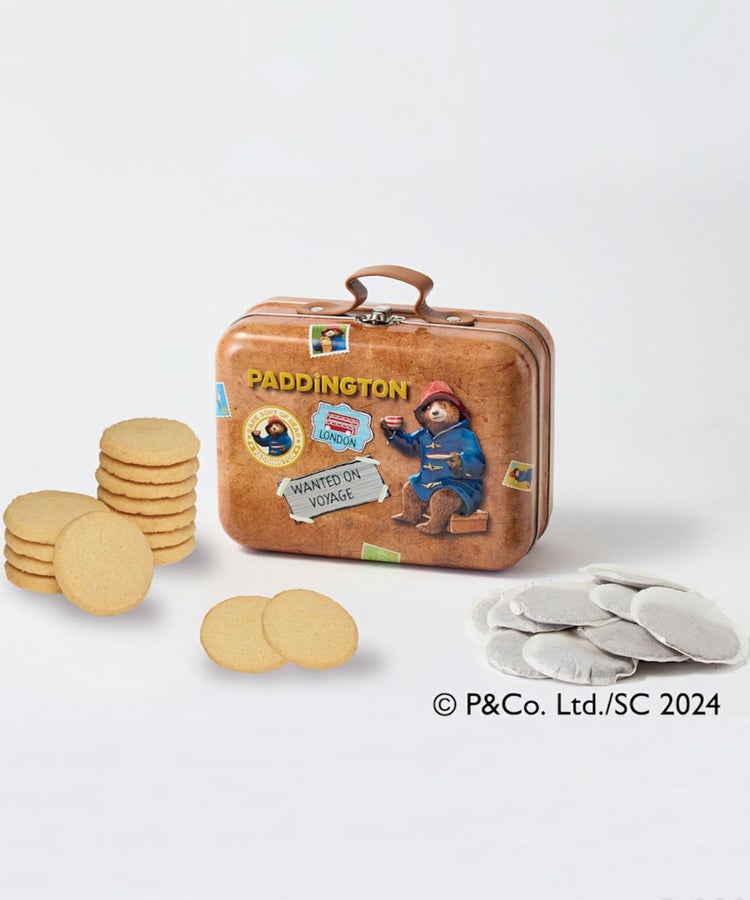 愛らしいパディントンがデザインされたティータイムにぴったりのトランク缶。