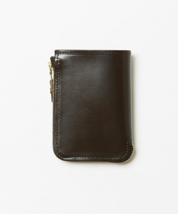 クレジットカードほどの大きさで、洋服やカバンへコンパクトに収めていただけます。本モデルは人気のラウンドファスナーモデルと異なり、あえてL字型にすることでスマートな印象に。合わせて内装もシンプルにつくり、札室を全面に貼らないことにより程よい厚みに仕上げました。札室、カードが4枚収納できるポケットに加え、大き目のコインケースを備えており、ミニマルなデザインでありながらも申し分ない機能性を持ち合わせています。