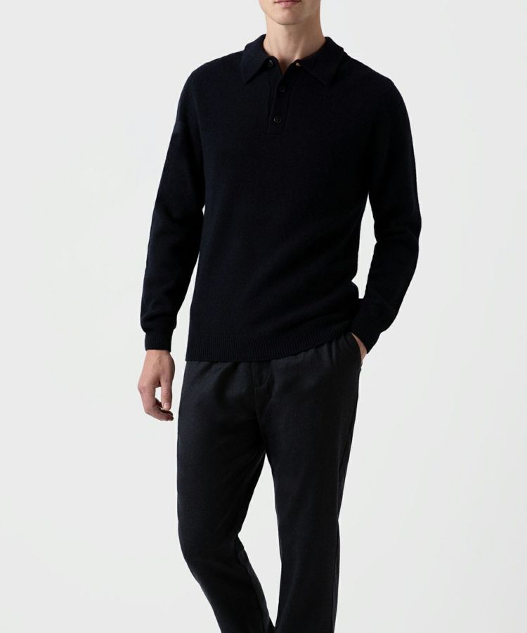 スコットランド産の柔らかなラムズウールで仕立てたクラシックなポロシャツ。