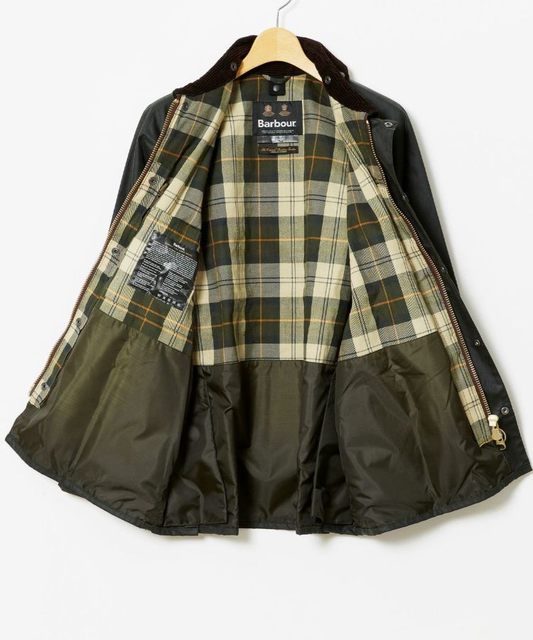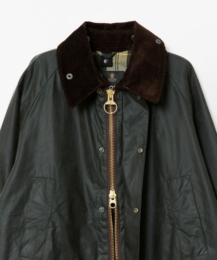 スーツに合わせても綺麗に見える着丈、動きを制限しないサイドベンツ、ラグランスリーブ、ポケットには防寒性の高いハンドウォーマーと風の入り込まないリブ仕様。そしてオイルドコットンの生地と大ぶりの襟にはコーデュロイ生地が用いられ、バブアーと言えばまさにこのモデルといった王道の風格を醸し出しています。こちらはレギュラーフィットを採用した英国正統派向けのサイジングとなっています。