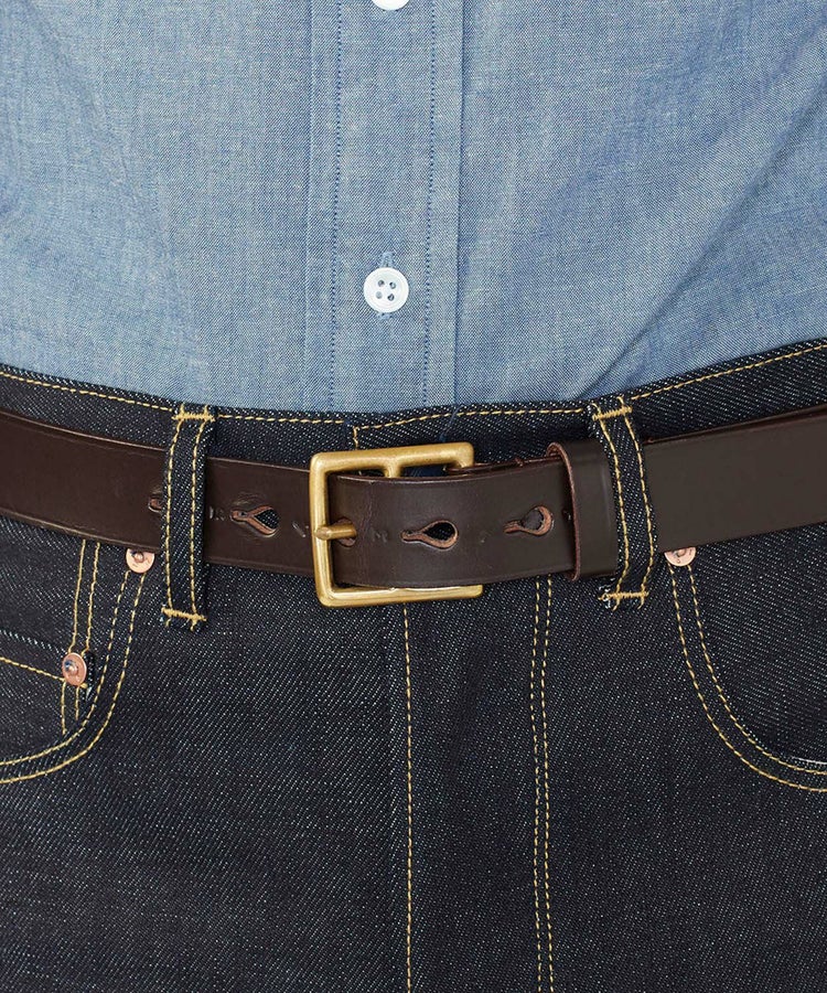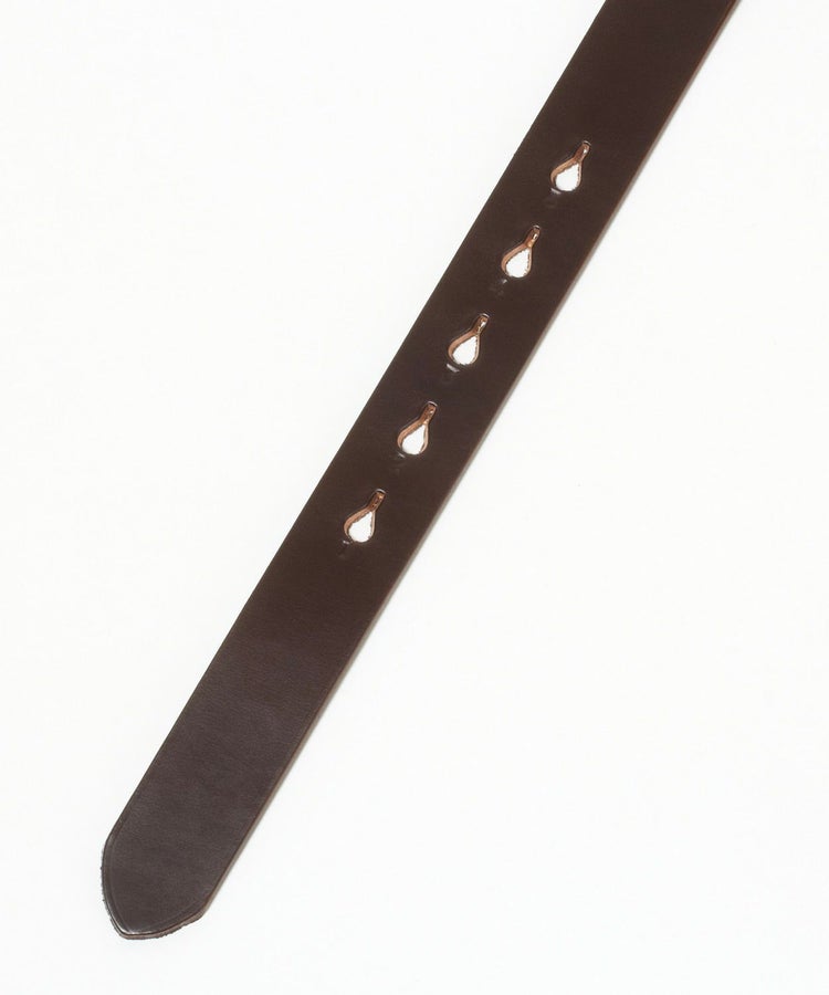 馬具から着想されたティアドロップ型のベルト穴が特徴のベルト。