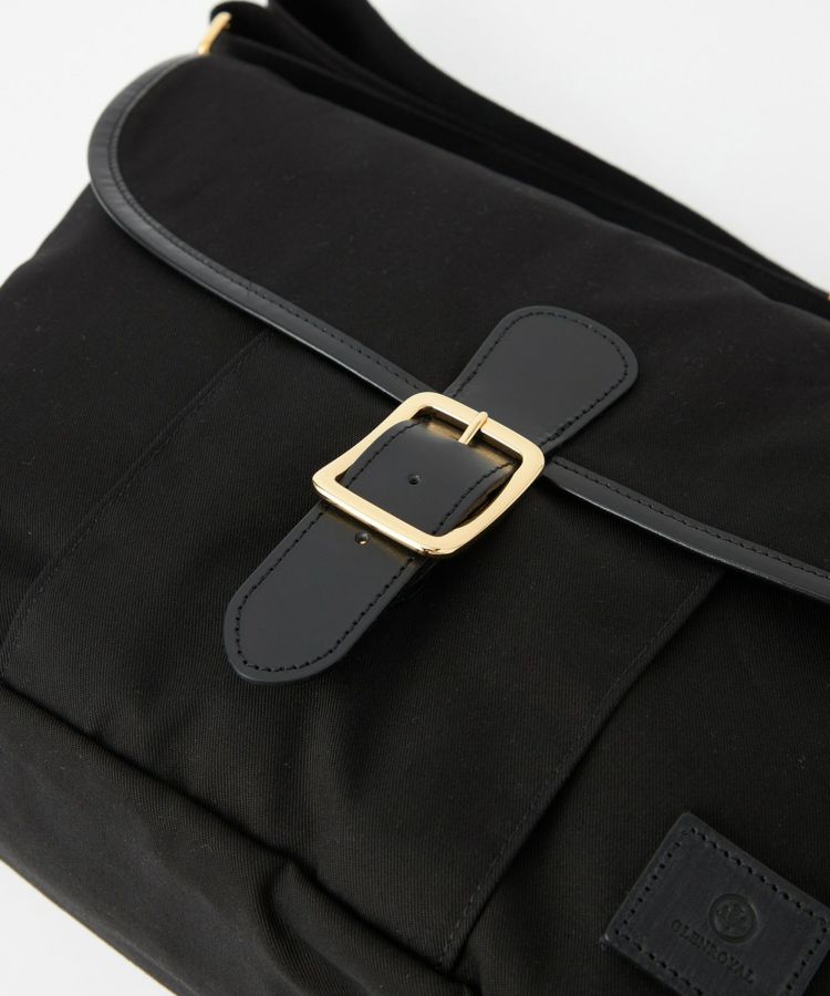定番のブラック×ブラックレザーと、クラシカルな配色のベージュ×ブラウンレザーでの展開。裏地にはGLENROYALのBOTTLE GREENを連想させるカラーをチョイス。13inch程度のラップトップが入る大きさで、ブライドルレザーをフラップパイピングに使用した贅沢で高級感のある逸品。フラップを開けずに中身が取り出せるファスナー口と、肩が痛くなりにくいよう、太めのショルダーテープを採用するなど、機能面もプラス。ポケットも充実しておりフロント×3とPCが収納できる内ポケットを付けています。容量も充分で、かつ軽量なため、タウンユースからレジャーなど幅広くお使いいただけます。