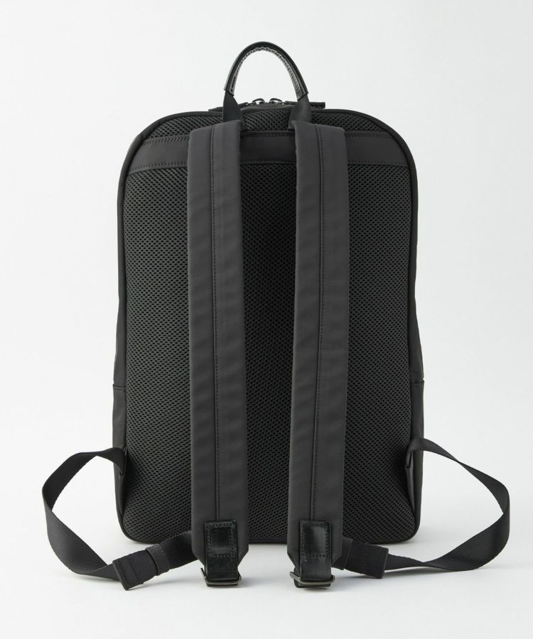 J2-0015 デイパックをよりスリムにしたサイズ感。13inch程度のラップトップが入り、幅広いシーンに対応。外側にはファスナー付きフロントポケット×1、内側にはPCが収納できるパッド入りポケットとメッシュポケットが付いており中身も綺麗に仕分けでき、機能性も充実しています。素材は程よい光沢があるナイロンツイル(撥水加工)を用い、随所にブライドルレザーをあしらうことで品の良さを演出。シンプルながらも高級感のあるアイテムです。