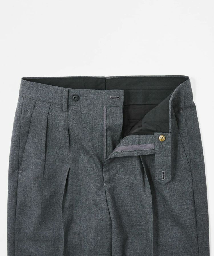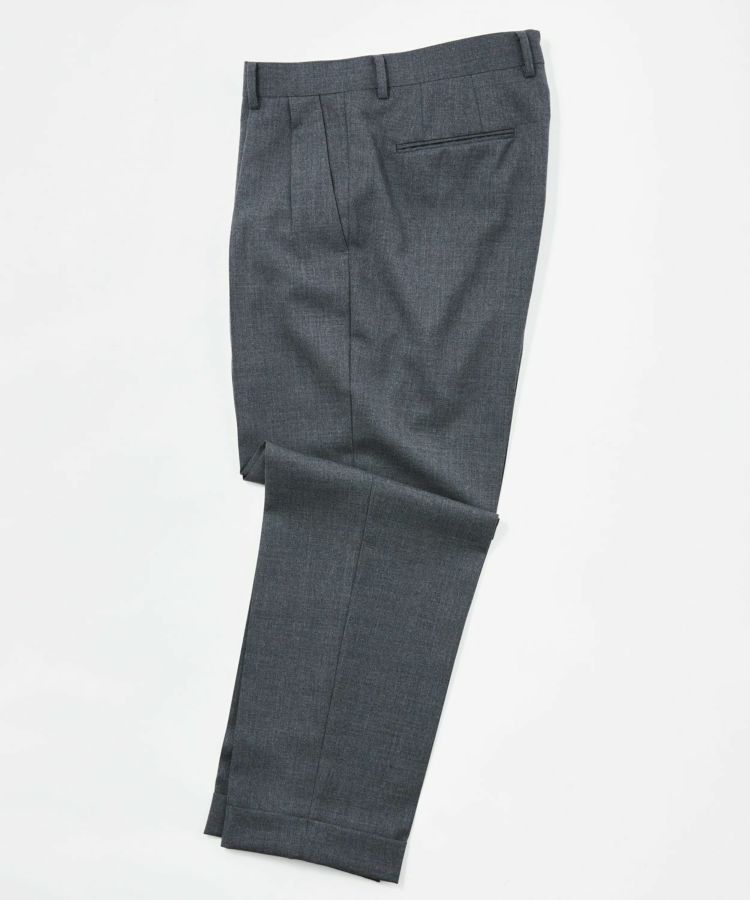 グレーの色合いもスタイリスト 四方さんこだわりのミディアムグレー。生地の表情も奥行きがあり、やや色あせたヴィンテージの様な色目は前回同様の特徴です。使い勝手が非常に良く、オンオフ問わず様々な色、素材にマッチします。