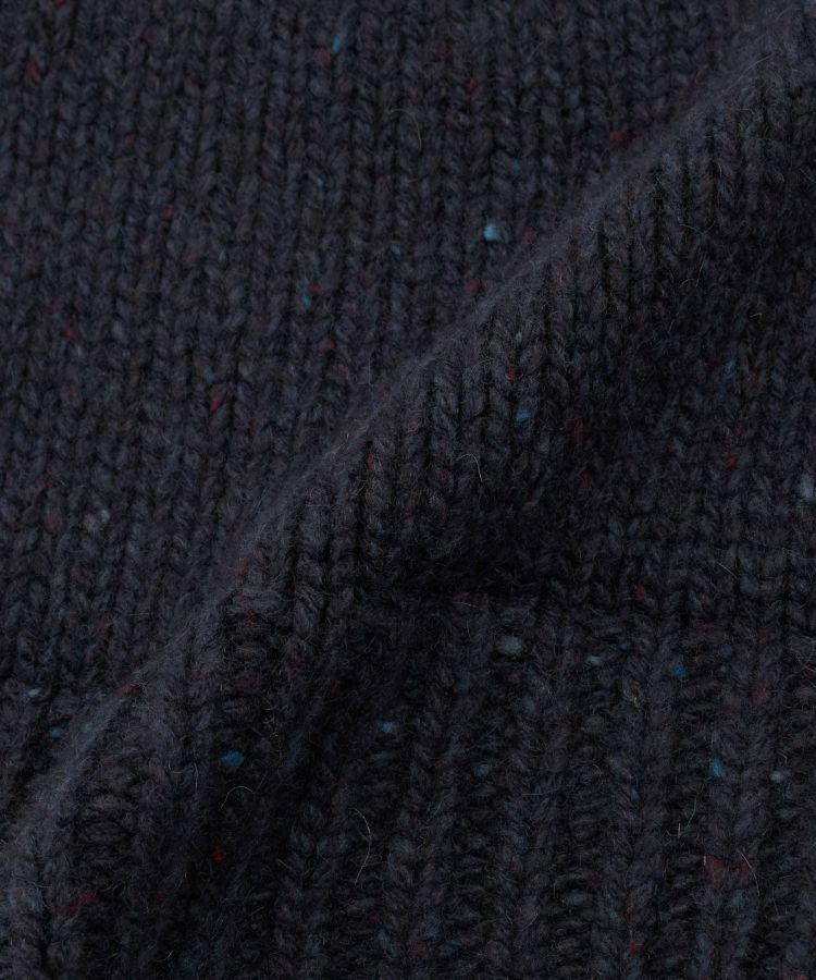アイルランド北西部で紡がれるドネガルヤーンは、多色のネップが散りばめられた独特の斑点模様が特徴です。スコットランドの職人が100%ピュアカシミアで編み上げることで、柔らかさと豊かな表情を兼ね備えたニットに仕上がります。糸の不規則さが一枚ごとの個性を生み、唯一無二の魅力を放ちます。