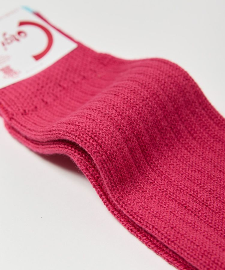 リブ編みで締め付けも程良く適度な肉厚生地。ふんわりと柔らかな肌触りでストレスフリーな履き心地です。また職人によるハンドリンキングでつま先を繋げているので、履いた時に当たりが無くスムースな縫い目を実現しています。