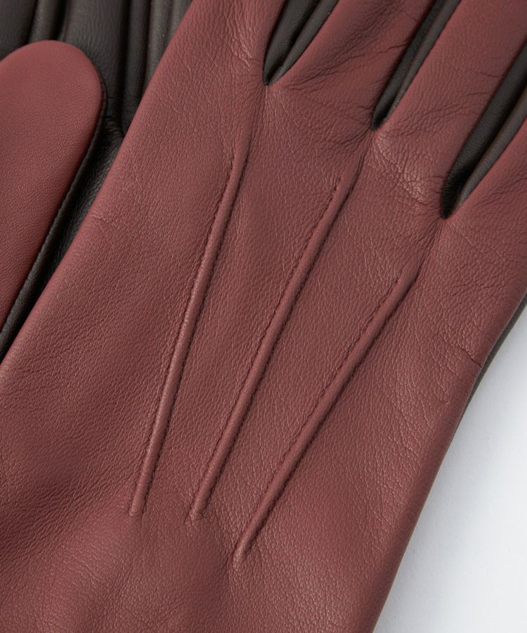ライニング(裏地)がついていないことで、肌に吸い付くような滑らかな革の質感を楽しむことができます。機械によるインシーム縫製で製造され、指まわりが細身のデザインが特徴。また全体的に光沢感のあるエレガントな印象で、スーツやドレスアイテムとも相性が良く、ビジネスシーンにおいても積極的に取り入れることができます。