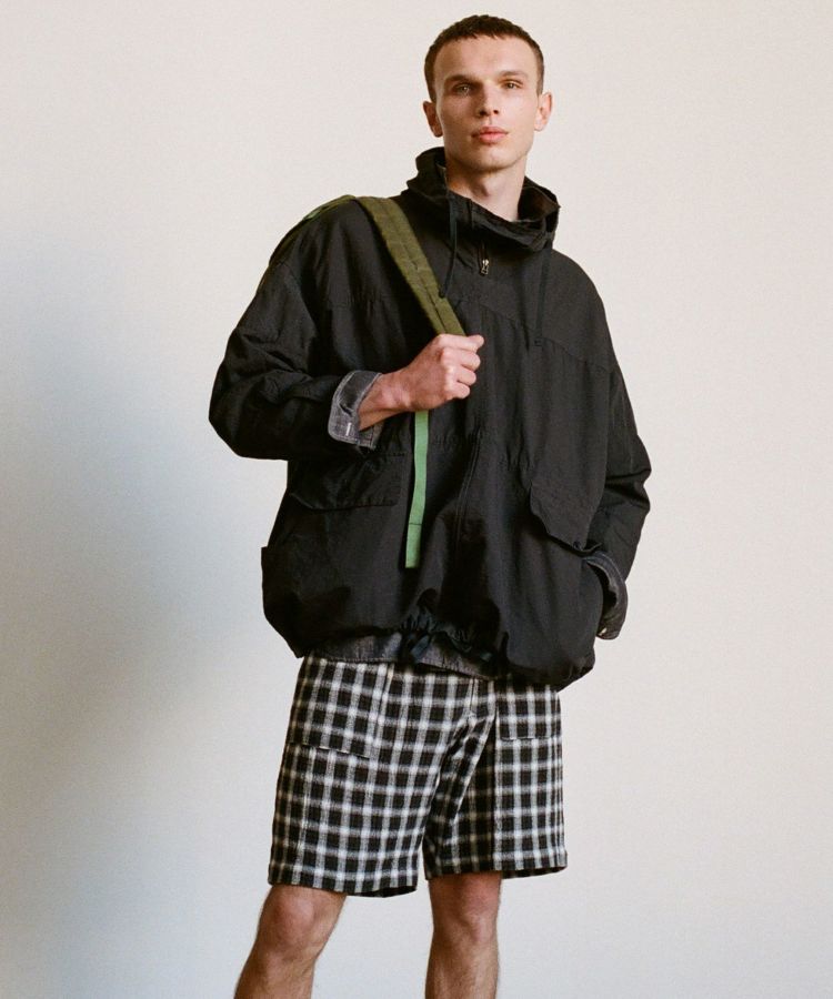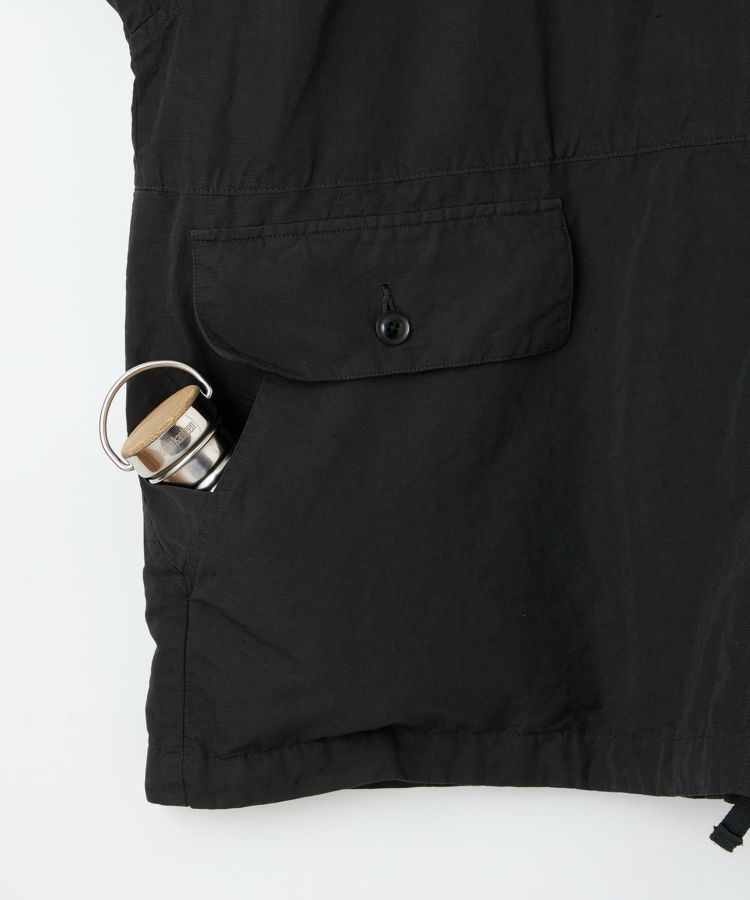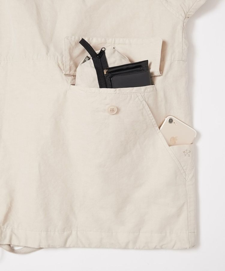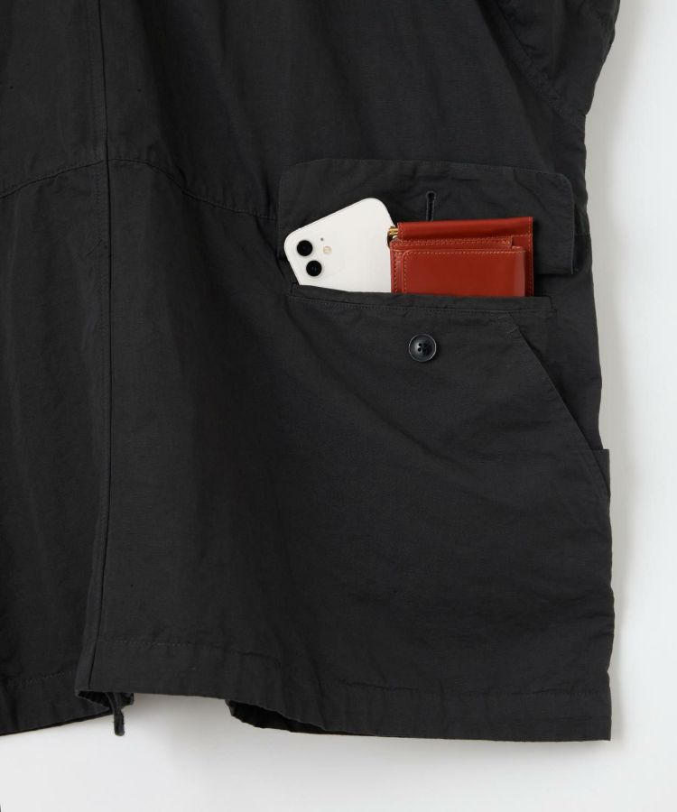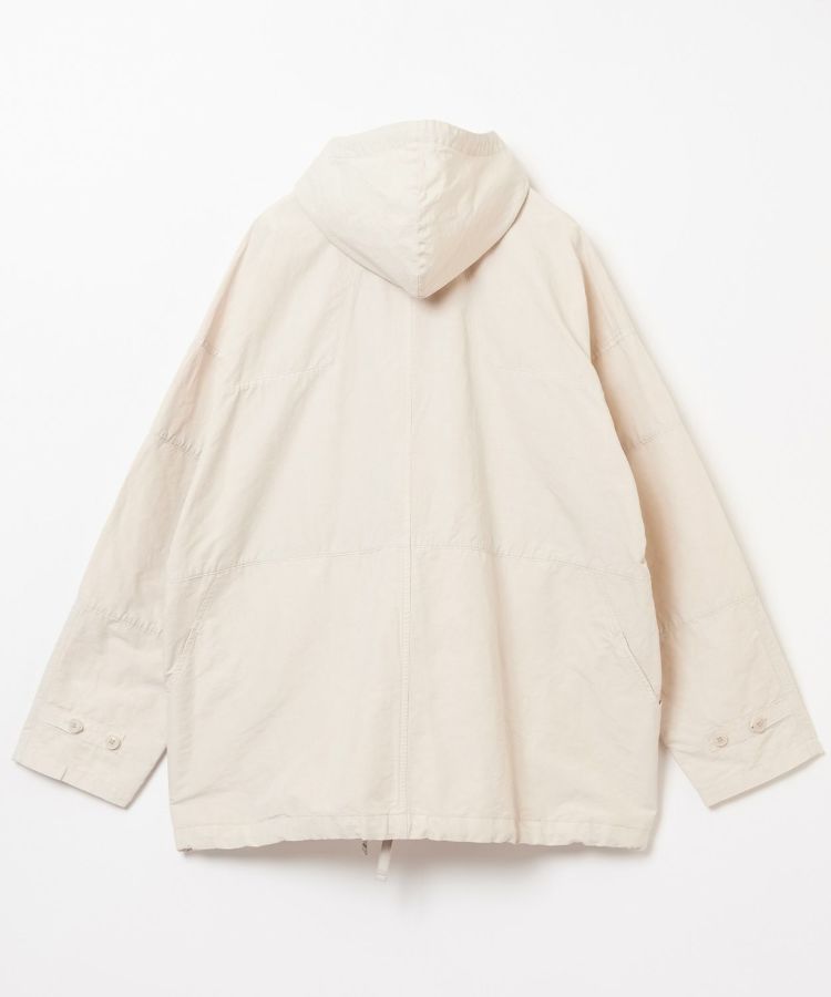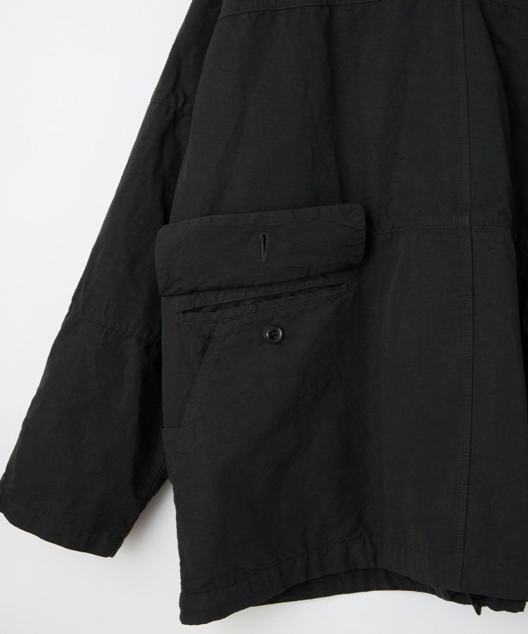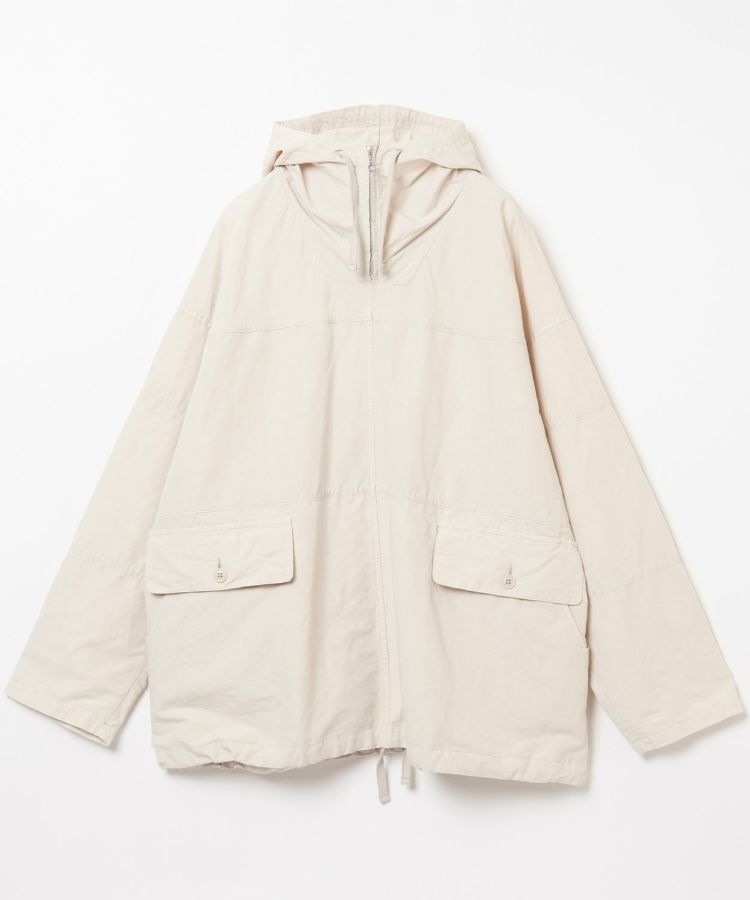 生地は製品染めを施し独特な風合いに仕上げた、ドライタッチで速乾性のある綿麻ウェザー。リネンをブレンドしていることで耐久性が増すとともに、ナチュラルな爽やかさを演出しています。自然なシワ感が絶妙に入っているので、アウトドアでもタウンユースでも「使える」素材感。清涼感とシャリ感があるため肌離れがよく、サラっとした着心地が気持ちの良いアイテムです。