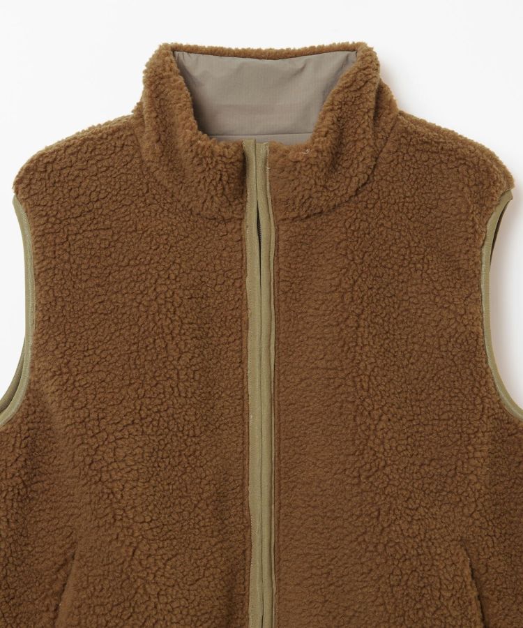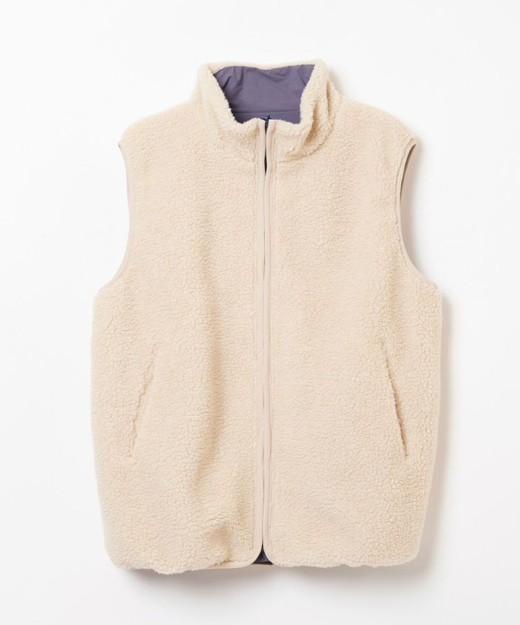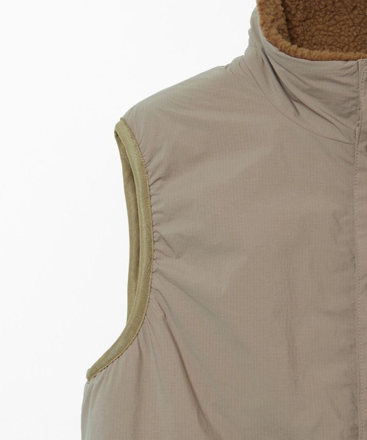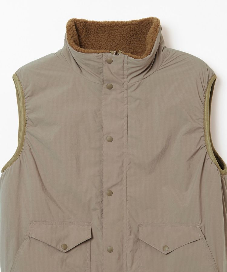 1990年代のアウトドアシーンでよく使われていた、リバーシブルの表がナイロンで裏がボアのベストを、現代的な素材とシルエットにモディファイしたアイテム。どちらの面も様々なレイヤードスタイルを楽しめます。