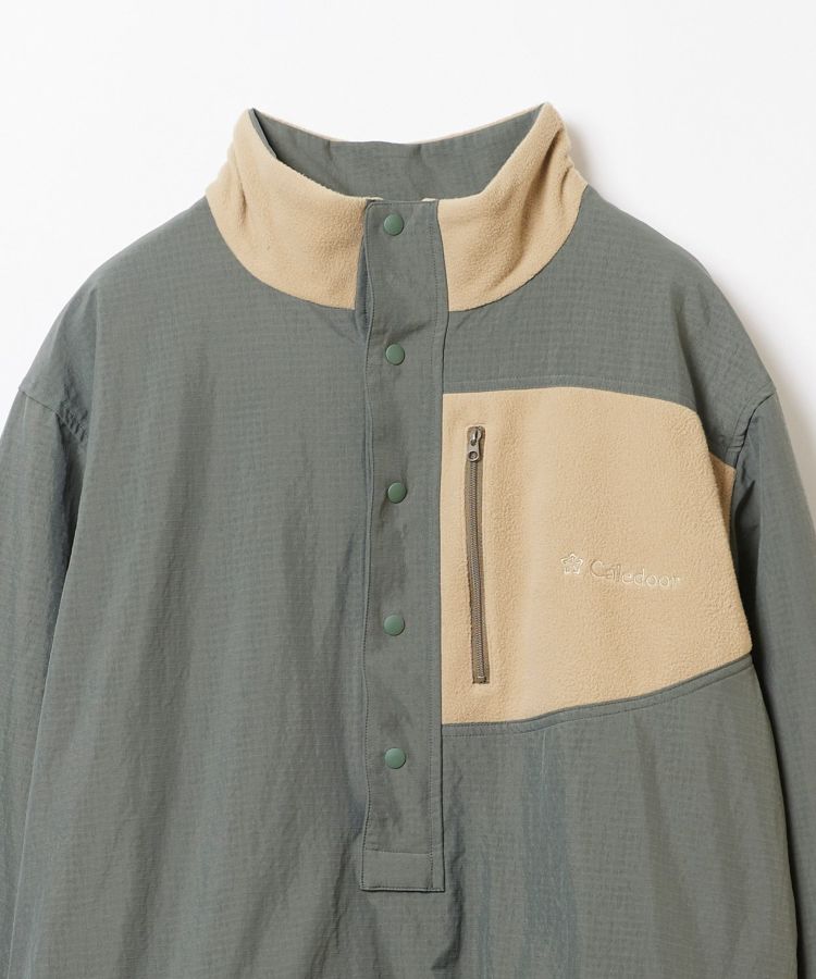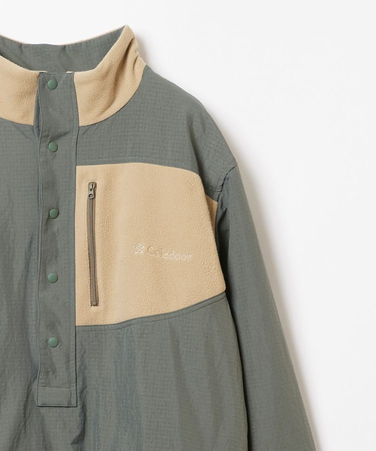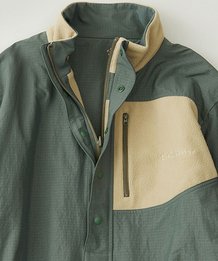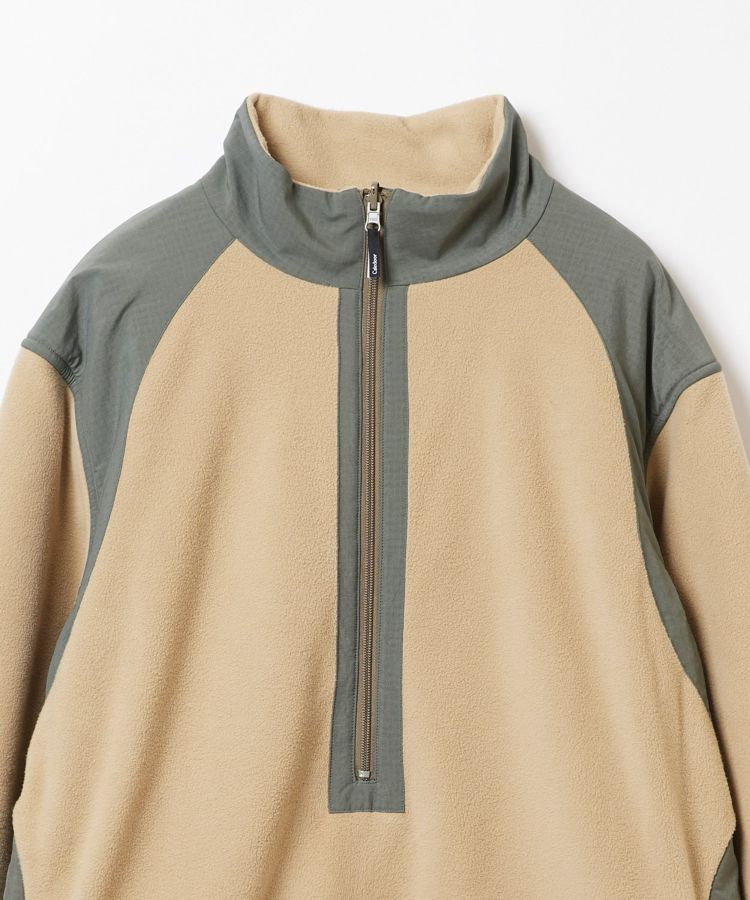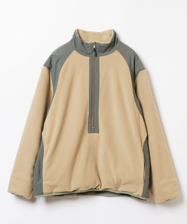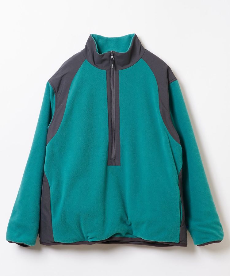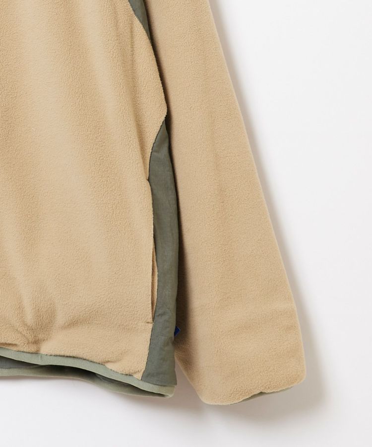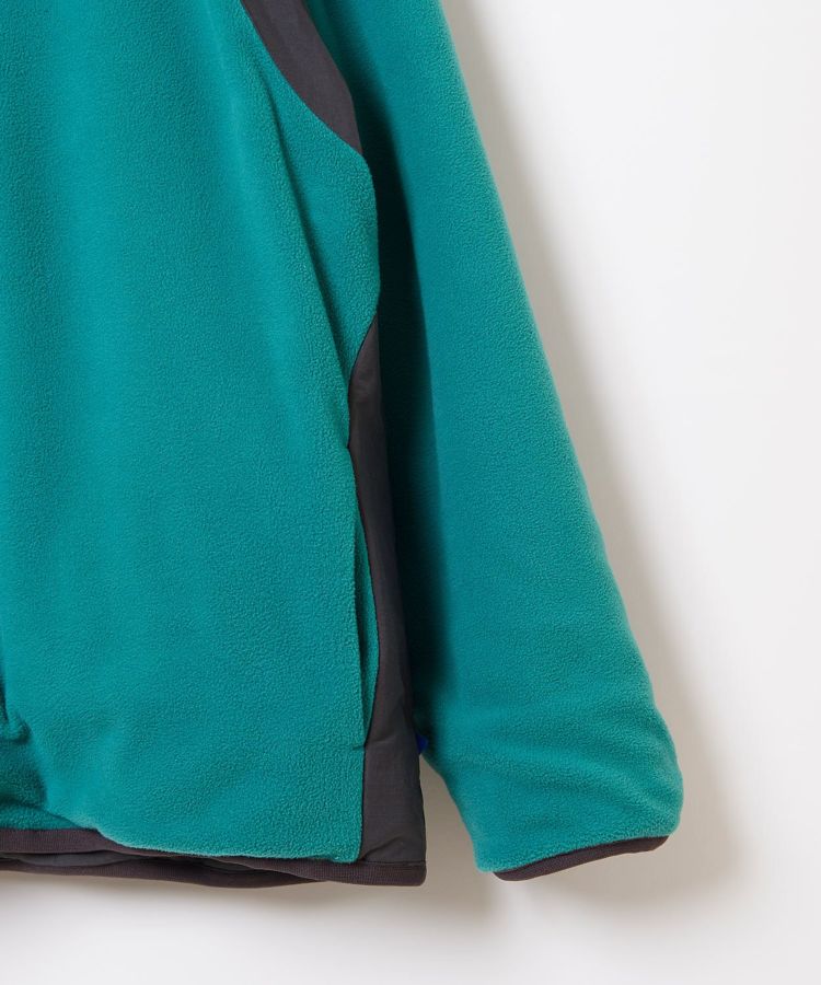 表側はナイロン素材メイン。ストレッチ性のあるナイロンのため動きやすい素材です。裏側はバックパックを背負ったときスレが生じるエリアに、フリースの上から耐摩性の高いナイロン素材を使用。肩周りが擦れてもピリングが発生しにくい仕様です。荷物を背負ったランブリングで活躍するアイテムに仕上がっています。