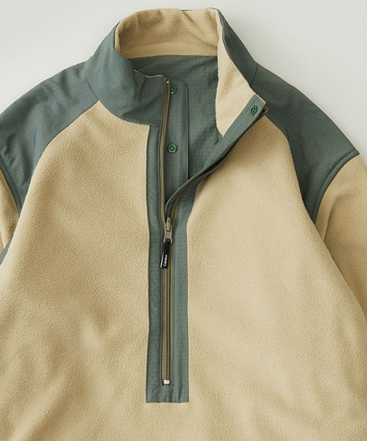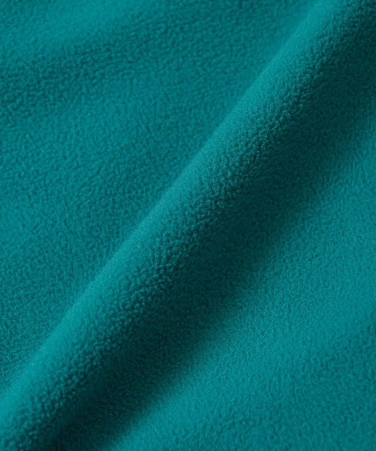 フリースはマイクロ糸を使用することで、ストレッチ性のあるなめらかな表面感が特徴のフリースに仕上げています。原料には環境にやさしいリサイクルポリエステルを使用。毛並みが細かく、肌さわりの気持ち良い素材です。