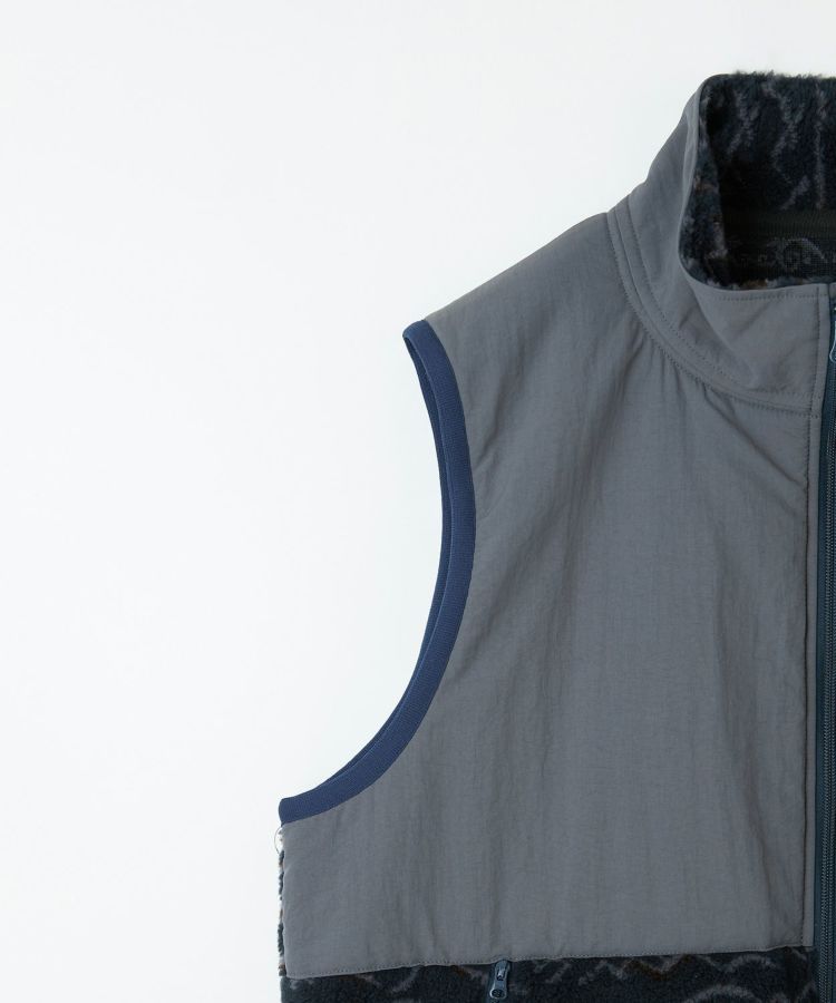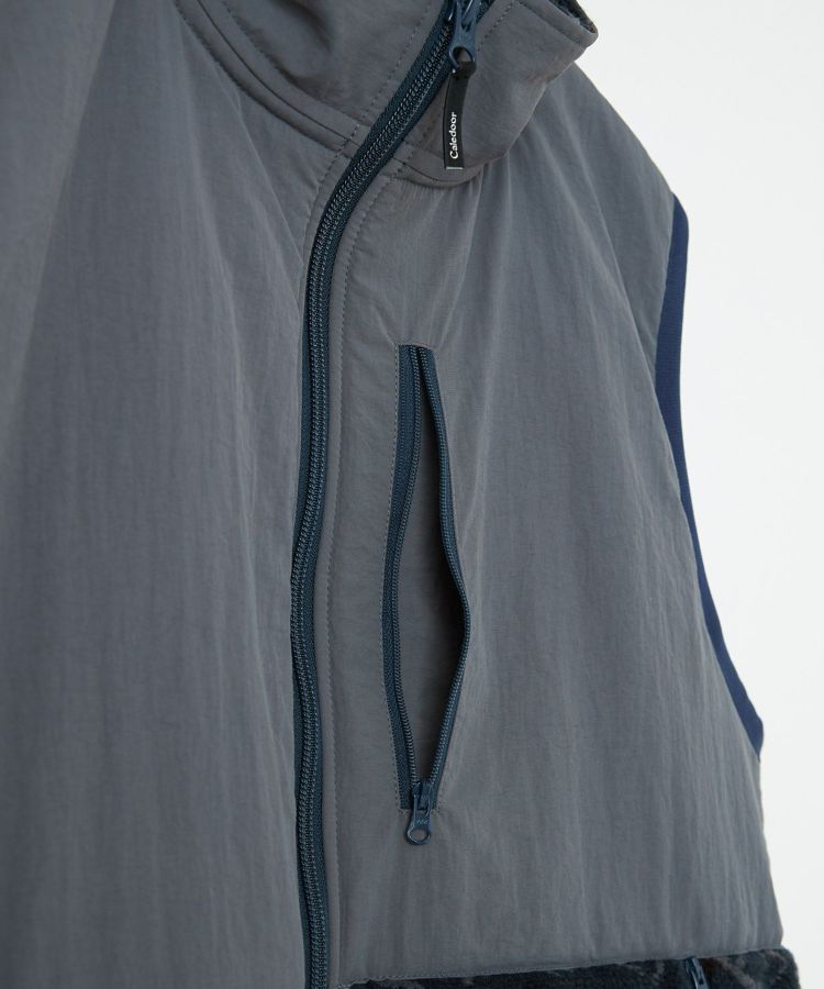 防風機能・UVカット機能を持つ素材を使ったシティユースでも活躍するフリースベスト。