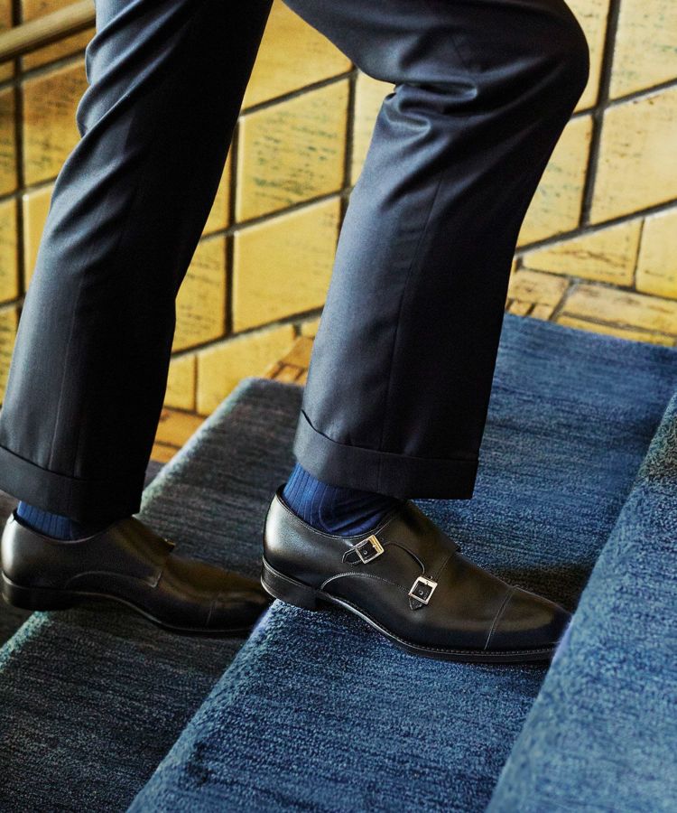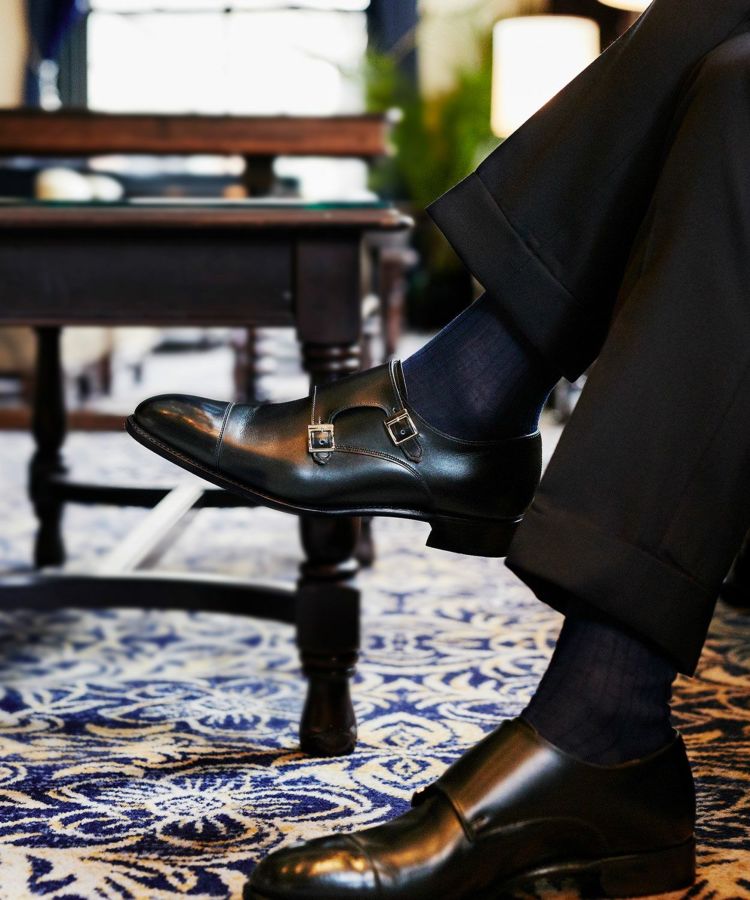 ブラックカーフを使用した、スーツからカジュルなスタイルにまで様々なスタイルに合わせることができるダブルモンクシューズ。