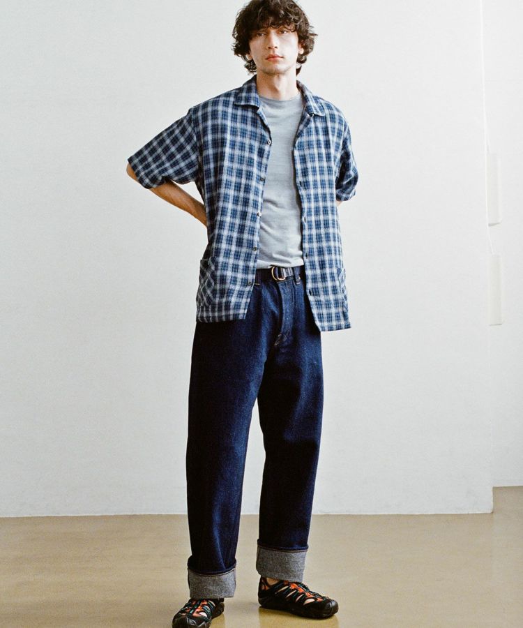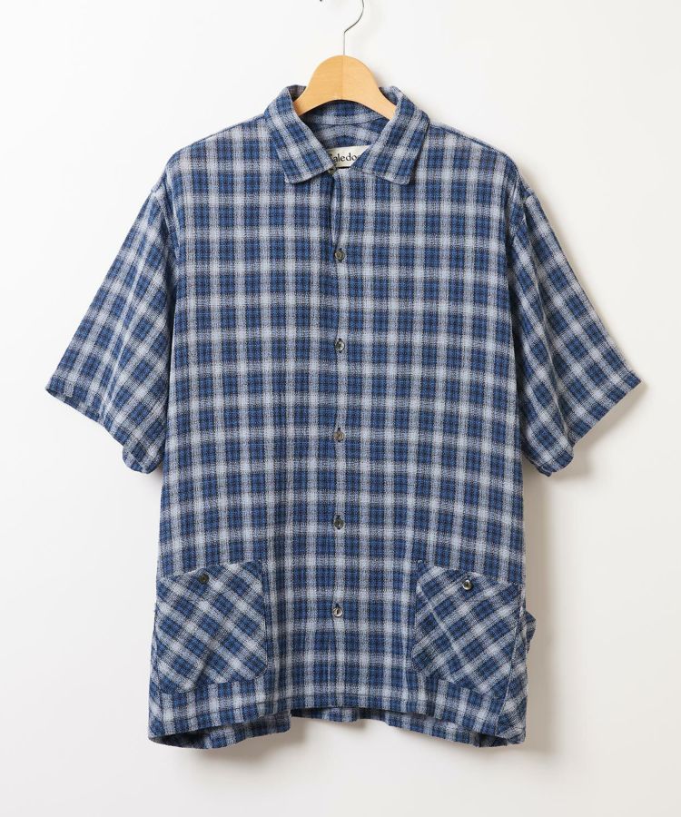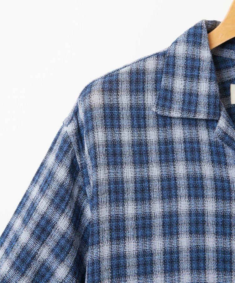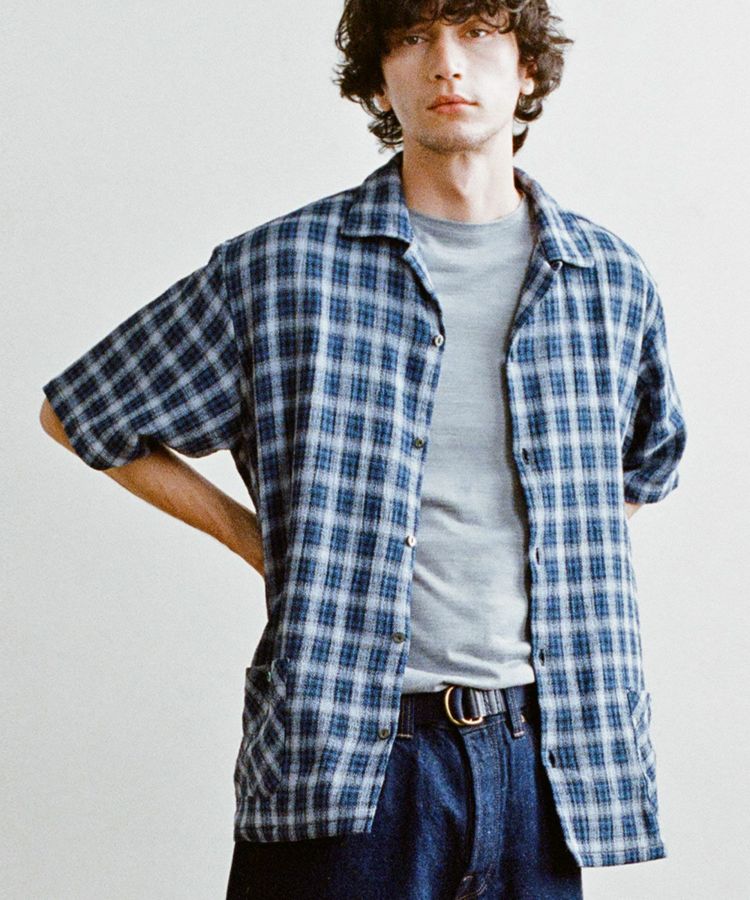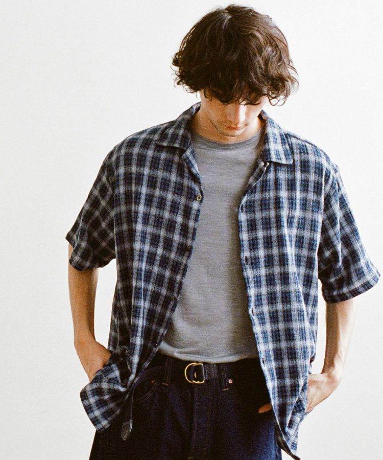 肌にくっつかない適度なシャリ感が心地よいオープンカラー半袖シャツ。