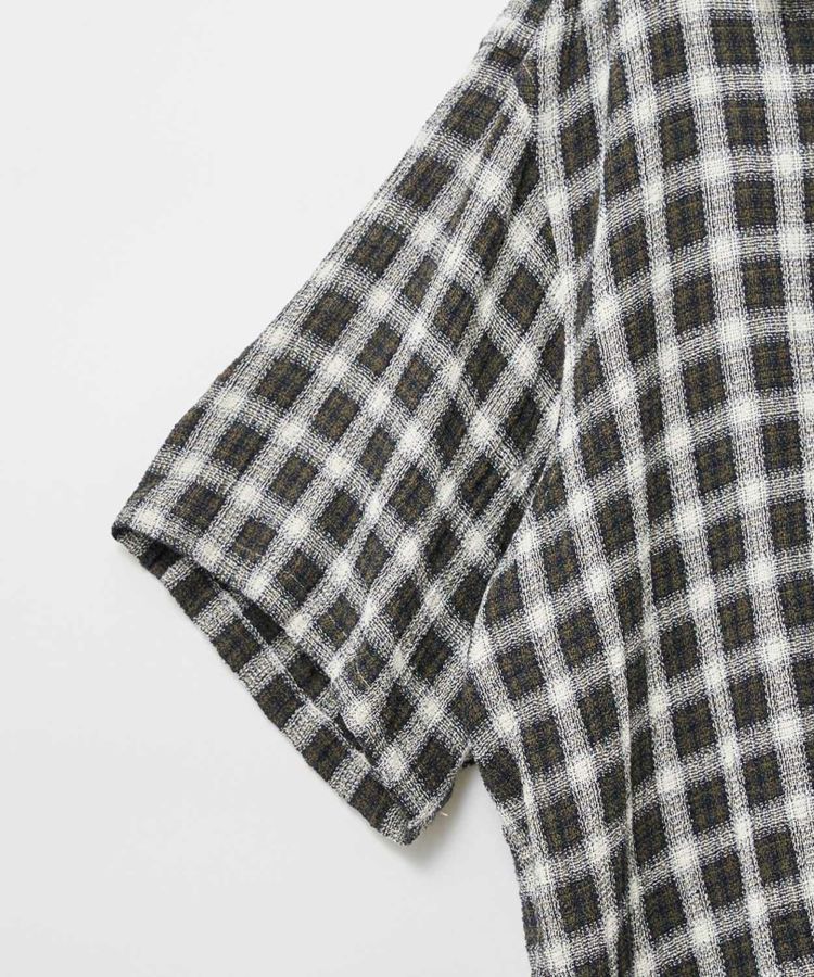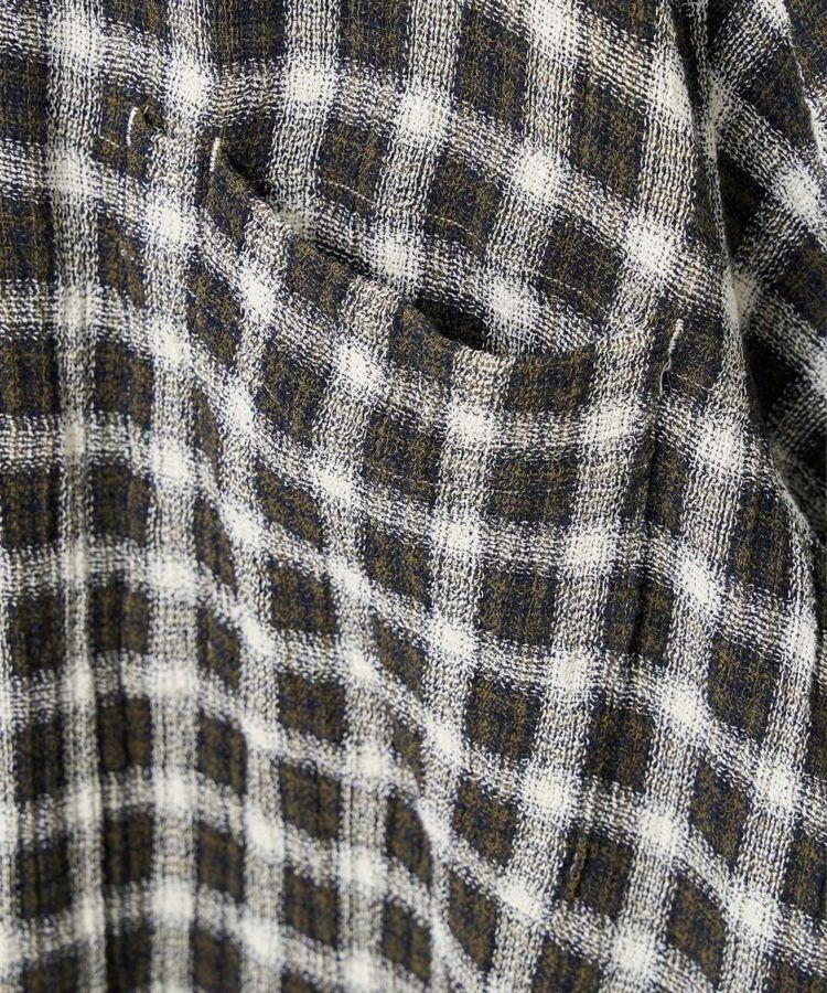素材は強撚糸のコットンを使用したパナマクロスをオリジナルで製作。希少なマシンを使い、糸が切れないようにゆっくりと時間をかけて織り上げるからこそ生まれる、独特な風合いをもつ生地に仕上がっています。メッシュならではの風が抜ける清涼感があり、汗をかいてもすぐ乾き、肌にくっつかない適度なシャリ感の心地よさが魅力です。度詰めになりすぎない若干のゆるさのある生地感が、ユニークなしっとり感を作り出してくれています。