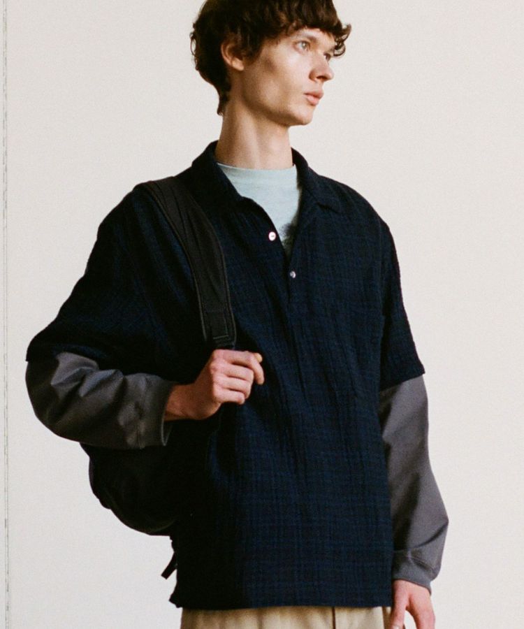 昨年春夏に好評だったオープンカラーシャツをアップデートしたハーフスリーブのプルオーバーシャツ。前作よりも身幅と袖幅を少し広めにして、ランブリング時の負荷を感じにくくし、より歩きやすさを追求した型に進化しています。ポケットは一般的なものより若干大きくしているため、ワンポケットですが収納性の高さを持たせています。