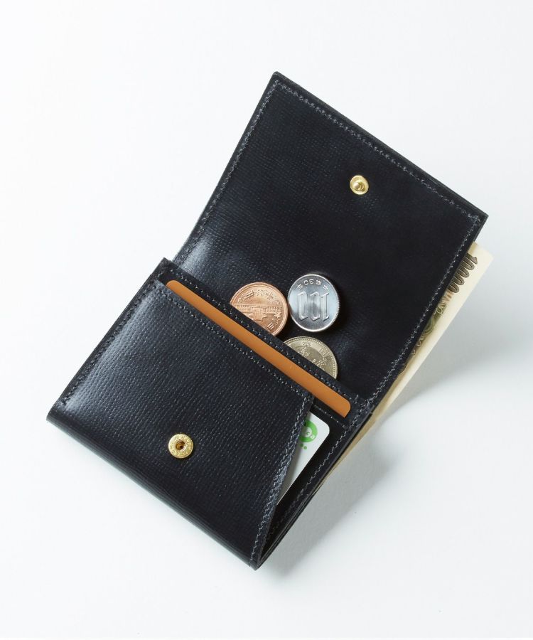 マチつきのポケットには、小銭を入れたり、カードを入れたり、自由自在。使い方次第で、表情を変える、まさにバーサタイルな財布。