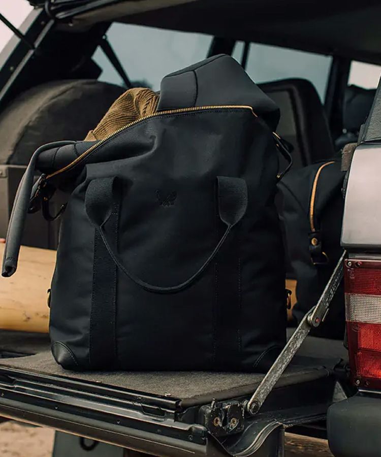 高性能な防水ナイロンを使用して、イギリス国内でハンドメイドで製造されています。軽量でありながら、しっかりとした重みも感じられ容量は50L、折りたたみができる仕様でありながらも十分な収納力を誇ります。