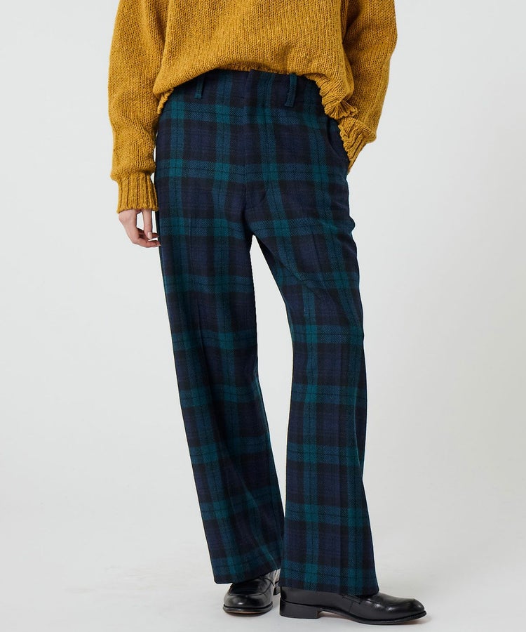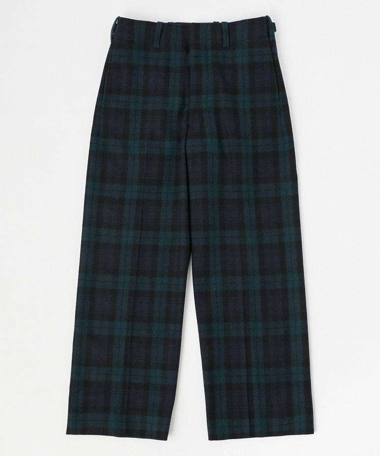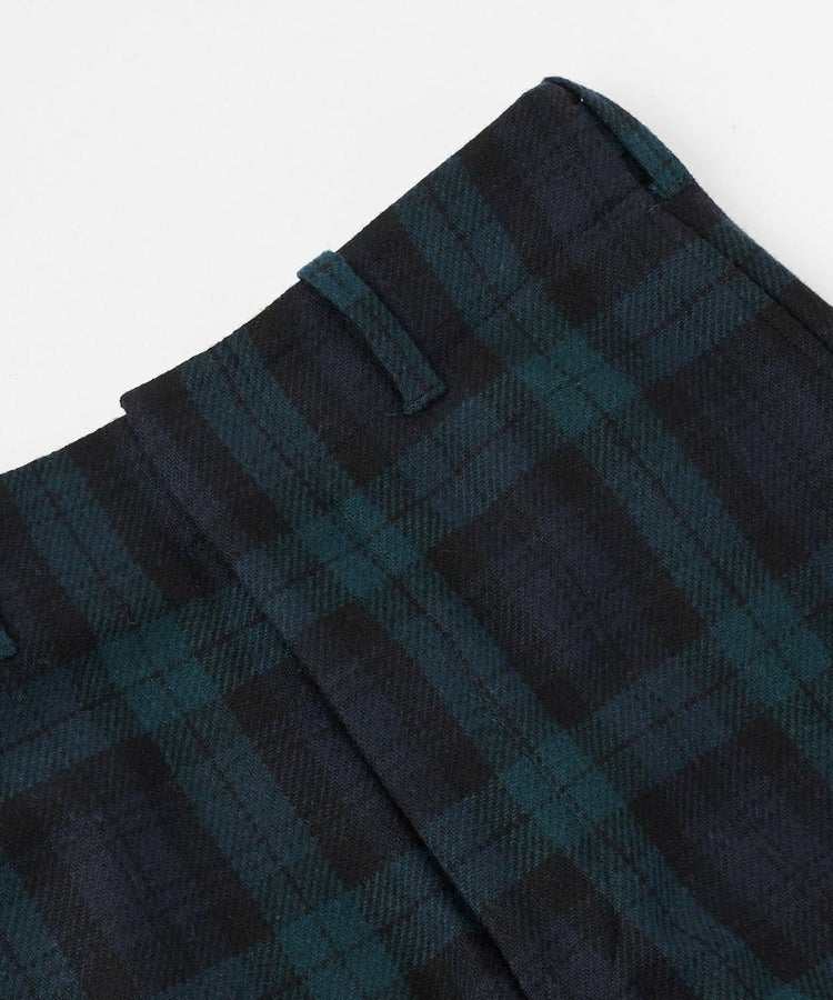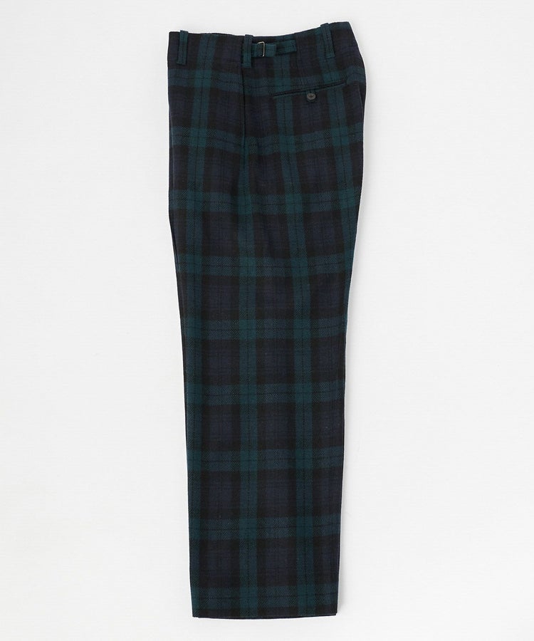 イメージソースとしたのは、ロイヤルスコットランド連隊がセレモニー(式典)の際に着用するセレモニーパンツ。デザインの特徴でもあるサイドシームレスを採用。サイドに縫い代がないため、サイドラインをきれいに見せることができます。手の込んだ丁寧な仕様のため、限られた国内工場で生産するなど、細部にまでこだわった上質な一着です。股上を深めにすることで、ヒップラインを拾いづらく足長効果も。ウエストはサイドアジャスターでサイズ調整が可能です。