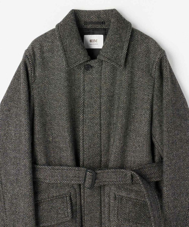 シルエットとセットインスリーブを活かしつつ、ディティールは可能な限りミニマルな仕上がり。肉厚なウールでもシルエットの変化を楽しめるように、ベルテッドデザインを採用。チンストラップ付きで、襟を立てた着こなしもおすすめです。