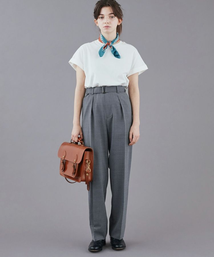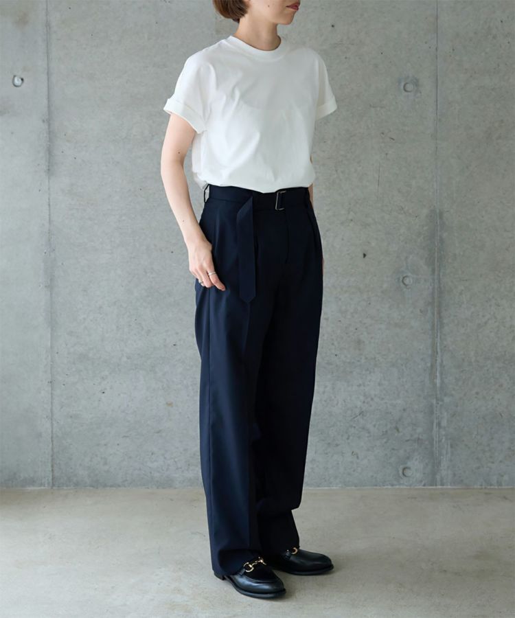 ストレートシルエットにすることでワンクッション入っても、裾上げしても美しいシルエットを出してくれます。 一年を通して快適に付き合えるライトウェイト素材を採用。しわになりにくく、ストレッチが効いていて着用しやすい生地です。共地のベルトが付いており、垂らして着るのもおすすめです。