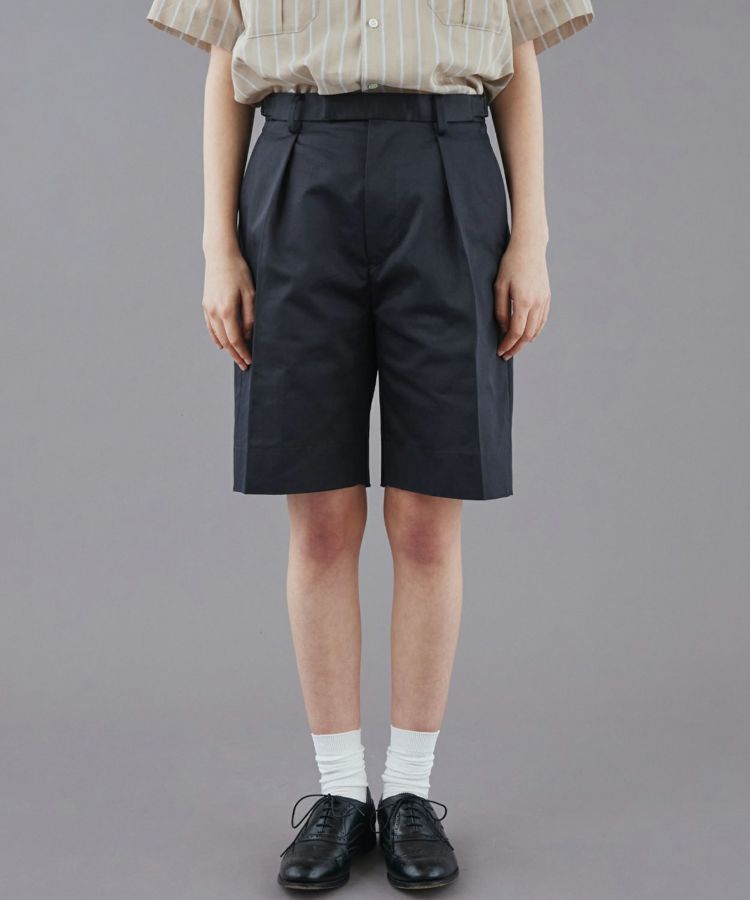 オフィサーパンツのディティールを踏襲しつつ、大人の女性が履けるようにすっきりとしたシルエットにデザインされたショートパンツ。