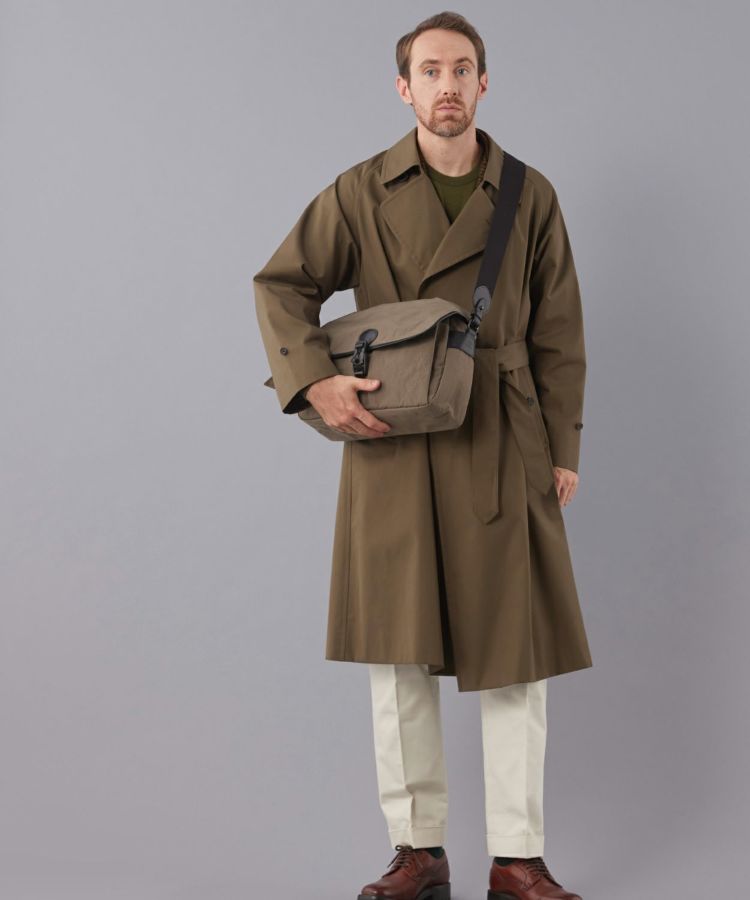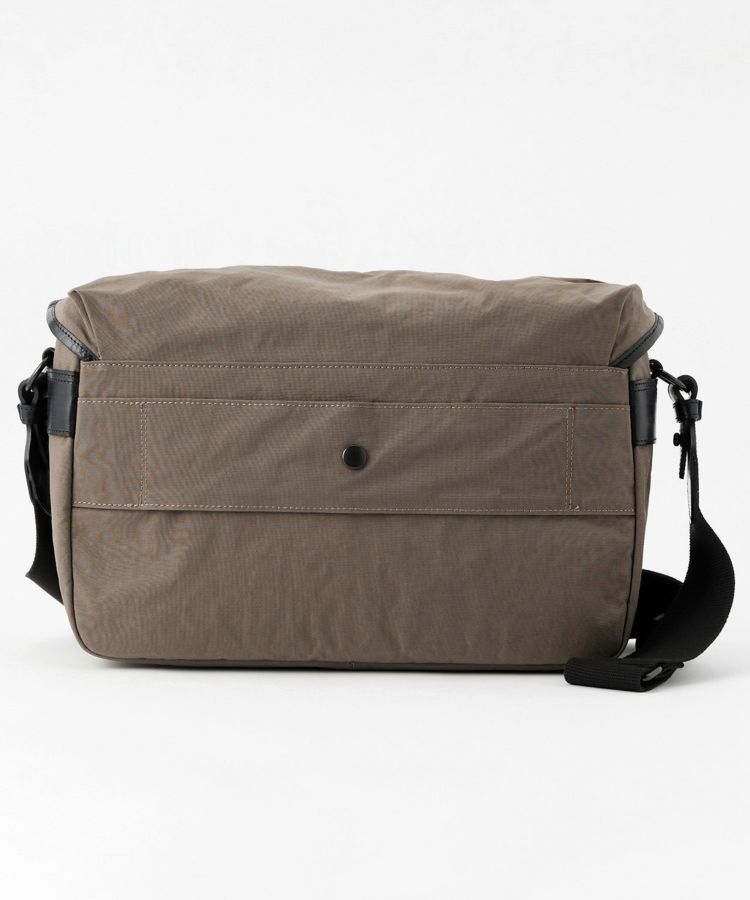 塩縮加工を施した生地密度が高いナイロンを採用したことで、強度がありながらも軽い使い心地のショルダーバッグです。タスラン加工糸を使用しコットンライクな仕上がりですが、撥水性を備えているところもポイント。フラップ裏には細々したものをわけて収納できるファスナーポケットがあり、普段使いにもぴったりです。