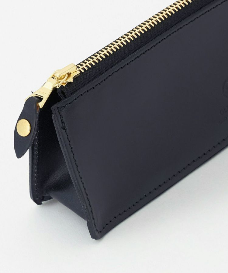 バッグの中でかさばらない丁度良い大きさで、開閉しやすいジップが付き、何よりポンと置いた際にしっかり自立してくれる使い勝手の良さが考えられた仕様。ブライドルレザーの滑らかで気持ちの良い質感も気分を高めてくれます。