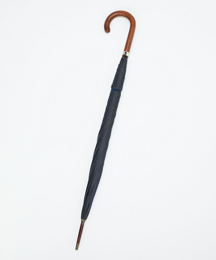 傘地には高級感のあるポリエステル100%の生地を使用し、UV加工も施されているため日差しが強い時は日傘としても活躍。持ち手には上質な木材を使用。はっきりとした美しい木目が流れております。