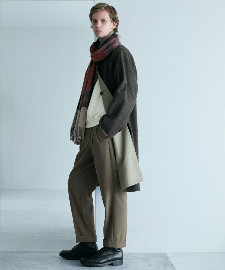 最高級のカシミヤが生み出す美しいドレープや光沢感を、見た目でも肌触りでも堪能でき、いつものスタイリングをぐっと格上げしてくれます。ボリュームがあるロングコートとは特に相性がよく、ショートブルゾンの場合はワイドパンツやミリタリースニーカーと合わせるとメリハリのあるシルエットを叶えてくれます。