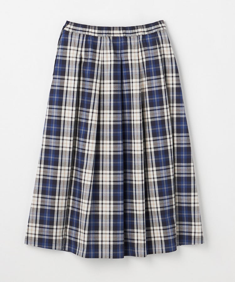 クラシックなタータンチェック地がコーディネートのアクセントになるソフトプリーツスカート。
