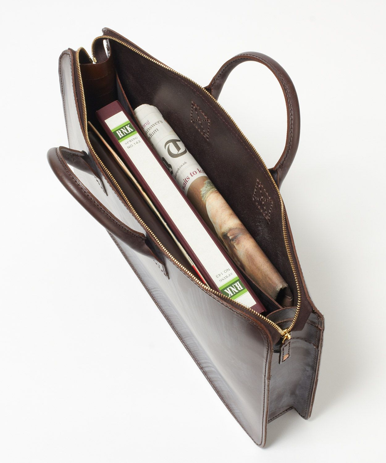 オールブライドルレザーとは思えない軽さを実現しています。見た目の美しさも保たれており、強度の高いブライドルレザーだからこそ副資材を使わずに自立式となっています。スーツスタイルをより洗練してくれる無駄のないミニマルなデザインです。