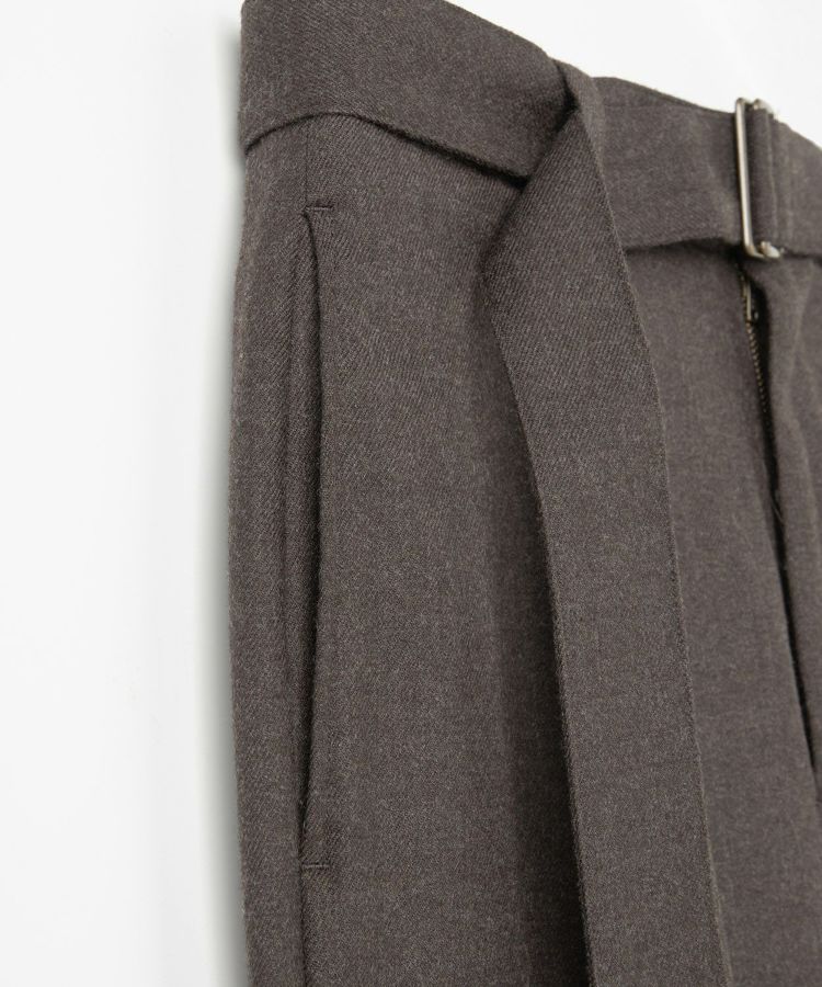 ストレートシルエットにすることでワンクッション入っても、裾上げしても美しいシルエットを出してくれます。2/60の糸を使用し、通常よりタテ糸の本数を増やす事でハリ感のある生地が特徴のハイカウントフラノ素材を採用。スッキリとした印象でオーバーサイズのニットなどと合わせるとこなれた雰囲気に。共地のベルトが付いており、垂らして着るのもおすすめです。