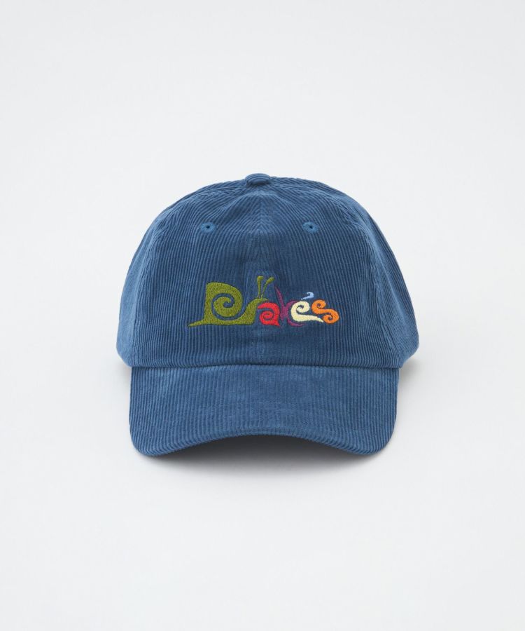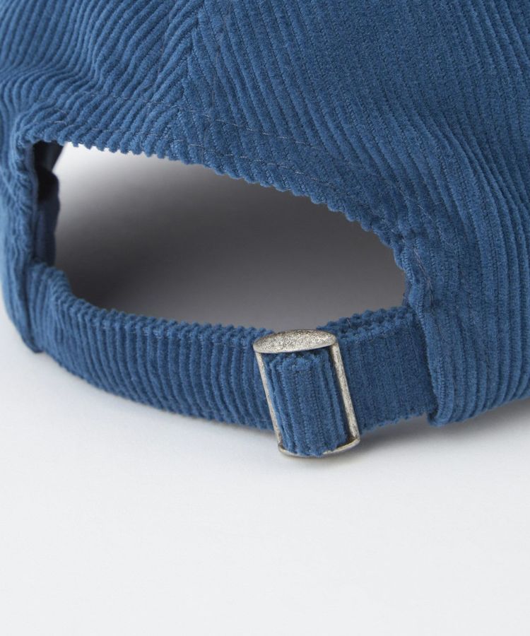 フロントにはカタツムリをモチーフにしたブランドロゴ刺繍が施されています。コットンコーデュロイで作られており、全体的に緩やかなフォルムが特徴的。かつてのスポーツウェアを彷彿させるリラックスしたシルエットが魅力。バックにはアジャスターがついており、サイズ調節可能です。