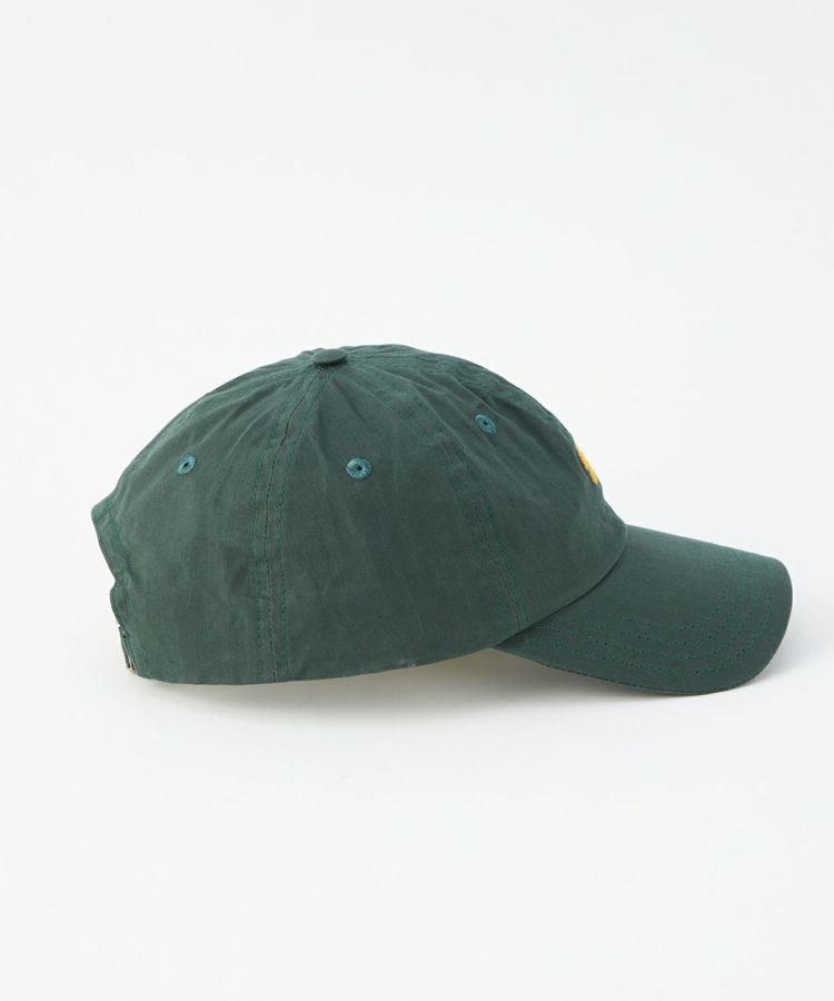 フロントにはブランドモチーフの「D」がチェーンステッチで刺繍されています。ワックス加工されたヘリンボーン生地で作られており、独特な風合いが特徴的。全体的に緩やかなフォルムで、かつてのスポーツウェアを彷彿させるリラックスしたシルエットが魅力。バックにはアジャスターがついており、サイズ調節可能です。