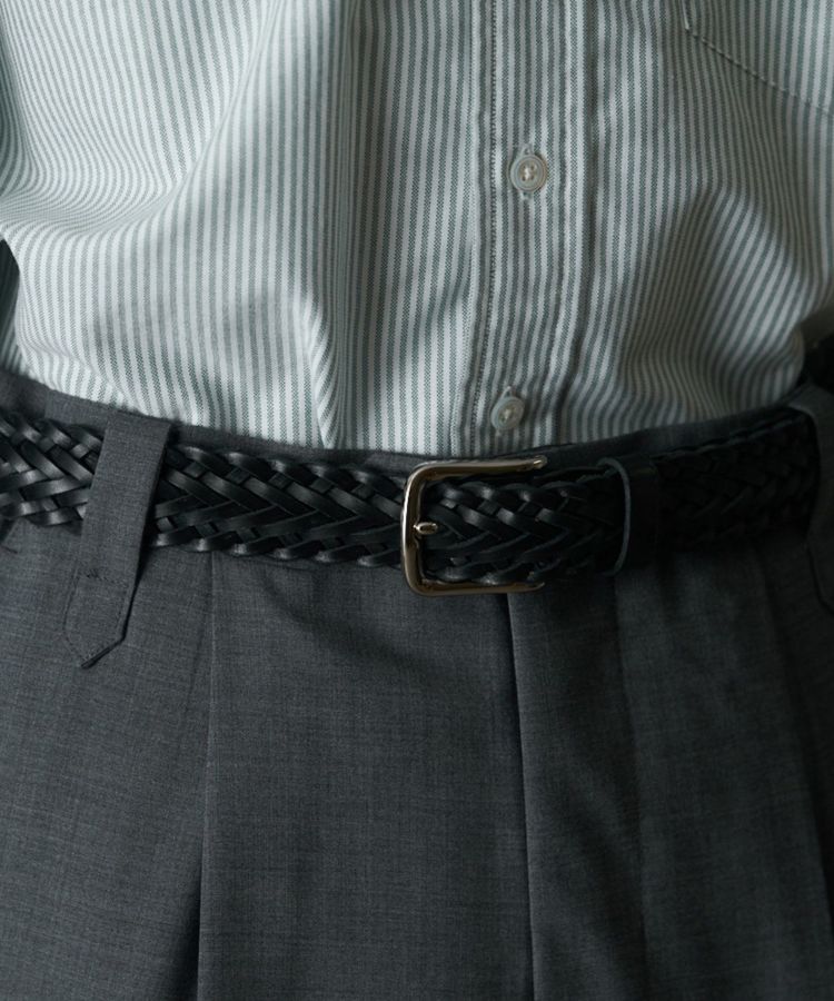 ブライドルレザー製のメッシュベルトは、ほかでは見ない珍しい逸品です。ベルト穴が無くサイズレスで使用出来るのも嬉しいポイント。手編みのベルトは伸縮性があり、日々のウエスト周りの変化に程よく馴染みます。ジャケパンスタイルからカジュアルまで幅広いコーディネートで活躍します。