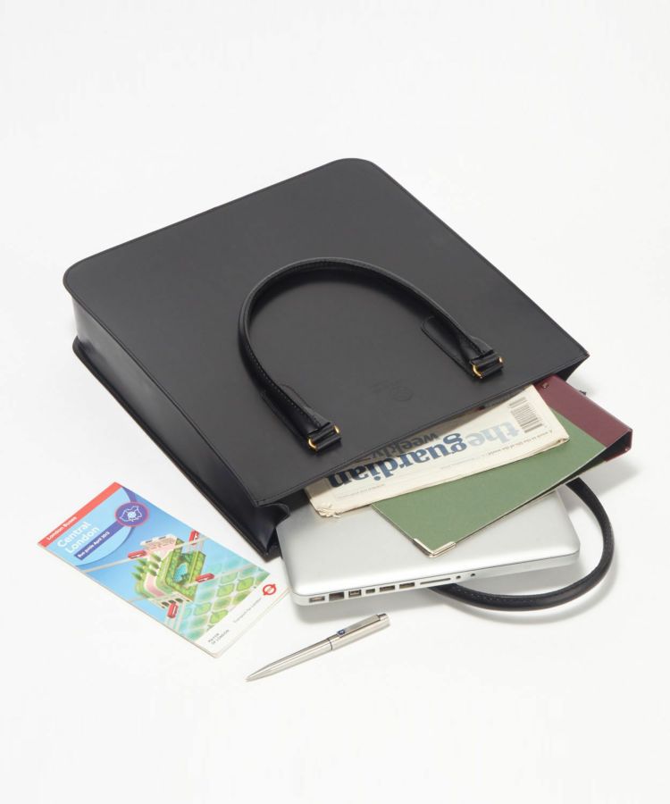 A4サイズの書類がゆとりを持って入る縦長式のレザートートバッグ。