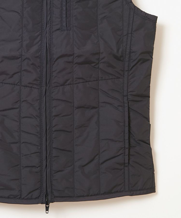全面に配置された中綿が冬の寒さをブロックし、背面は中綿とキルティングをなくすことで余分な熱を逃がす仕様に。早朝や夜道でのランニングで視認性を高めるため、バックサイドにリフレクターテープを使用しています。