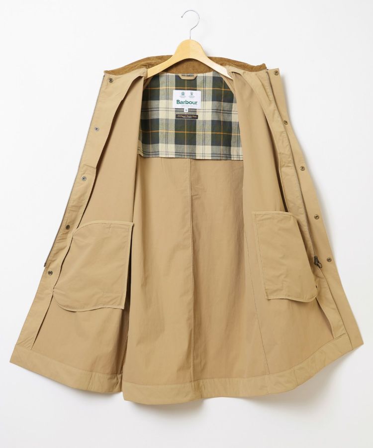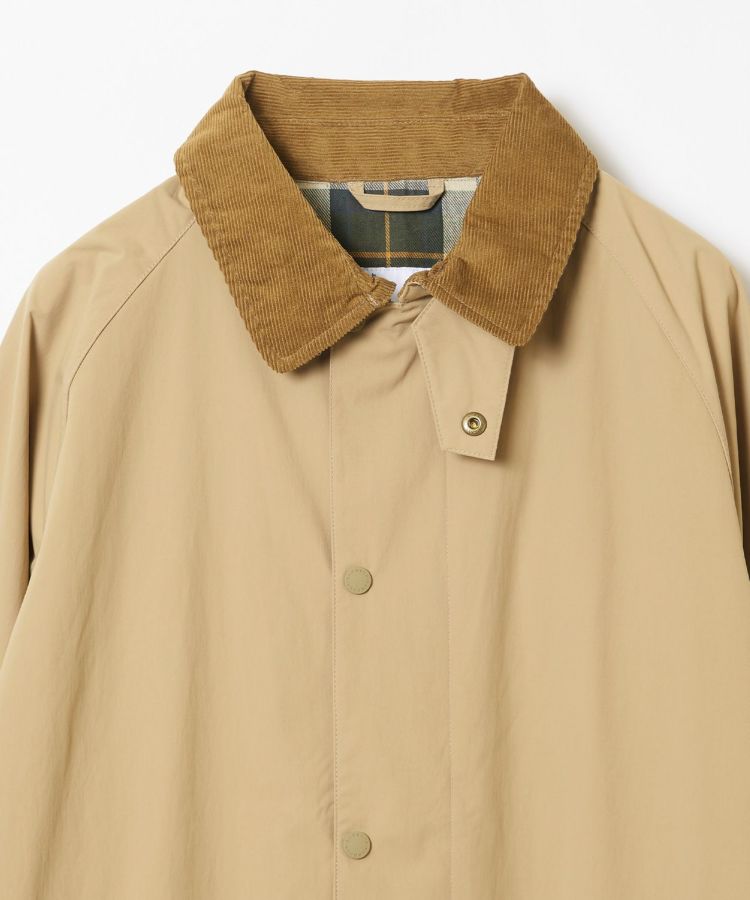 可動域の広いラグランスリーブやダブルジップなど、バブアー特有の機能的なデザインはそのままに、ハンドウォーマーポケットを配備し見た目はすっきりとシンプルに。コーデュロイの衿はチンストラップを備えており、衿を立てた時もしっかりホールドしてくれます。袖口には調節可能なスナップボタンを備えています。