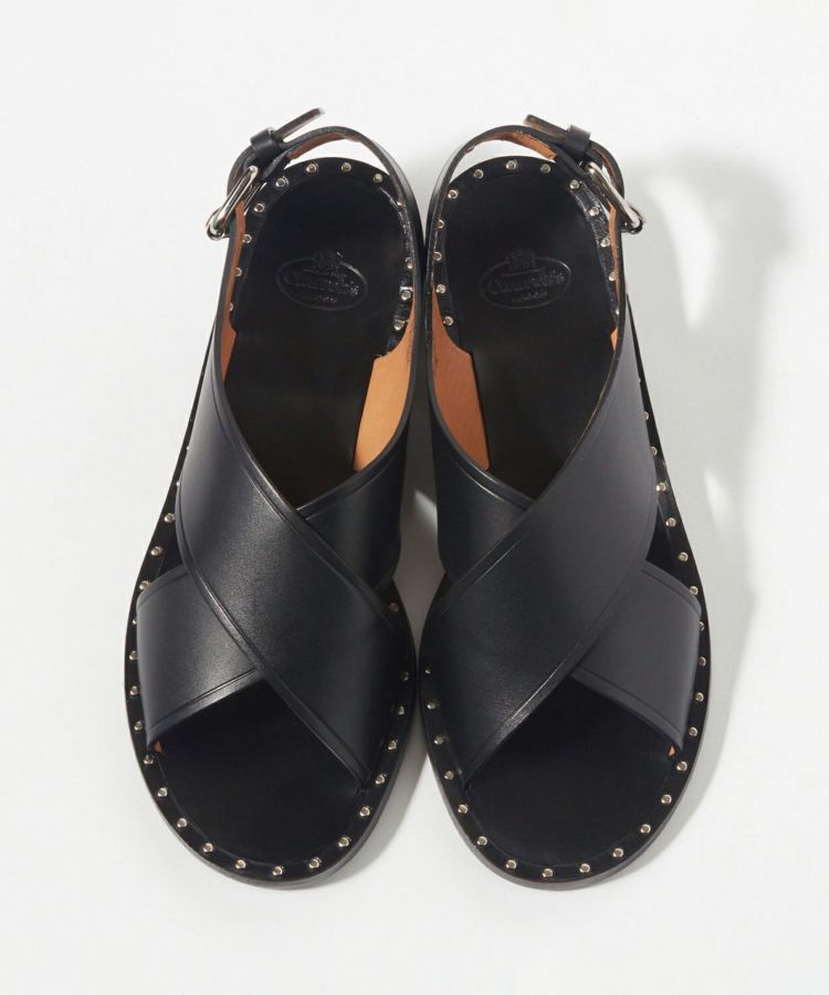 エッジに施されたスタッズがアクセントになったクロスサンダルRHONDA(ロンダ)。